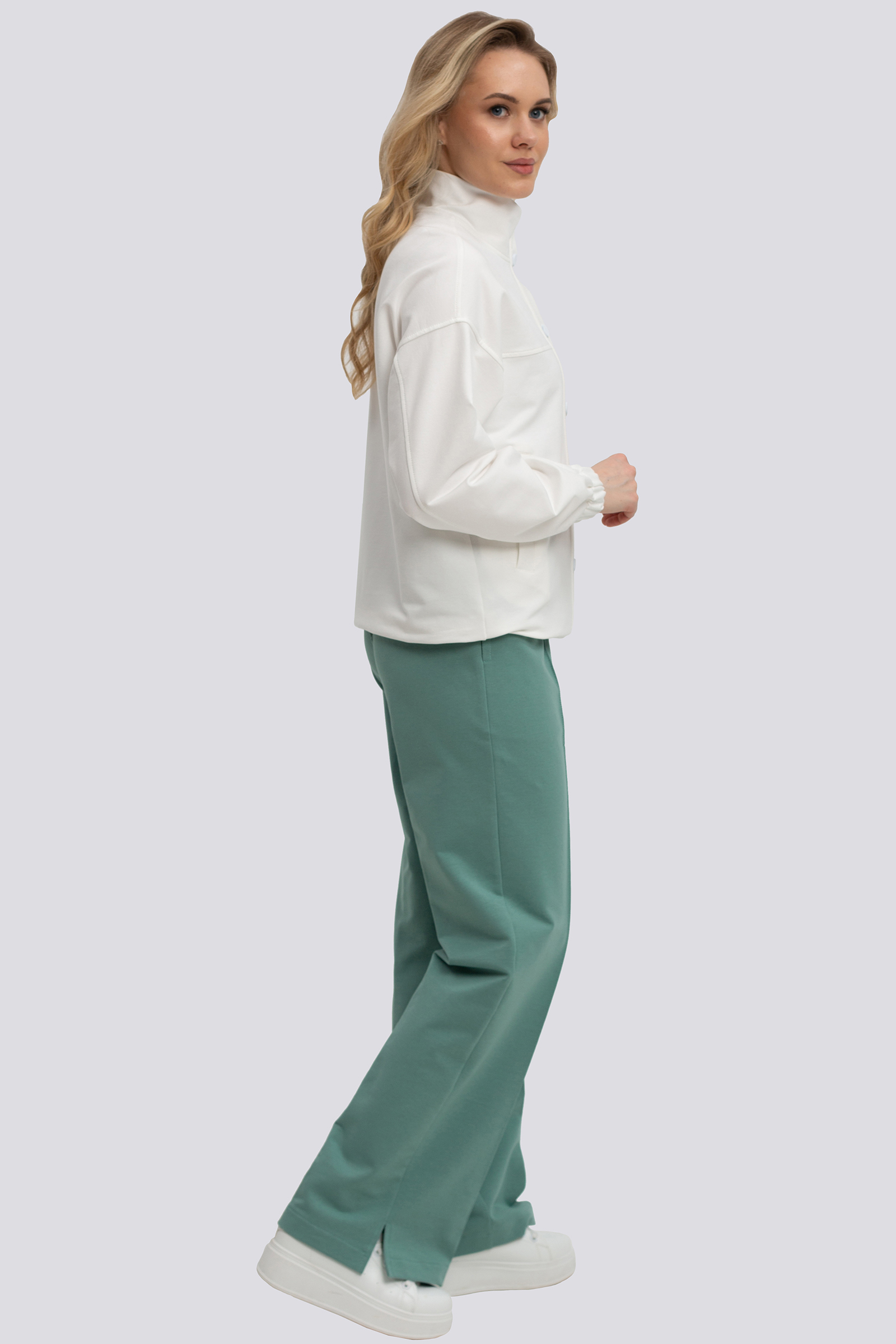 воротником-стойкой и спущенным плечом, демонстрирует расслабленную элегантность. Низ рукава на резинке
