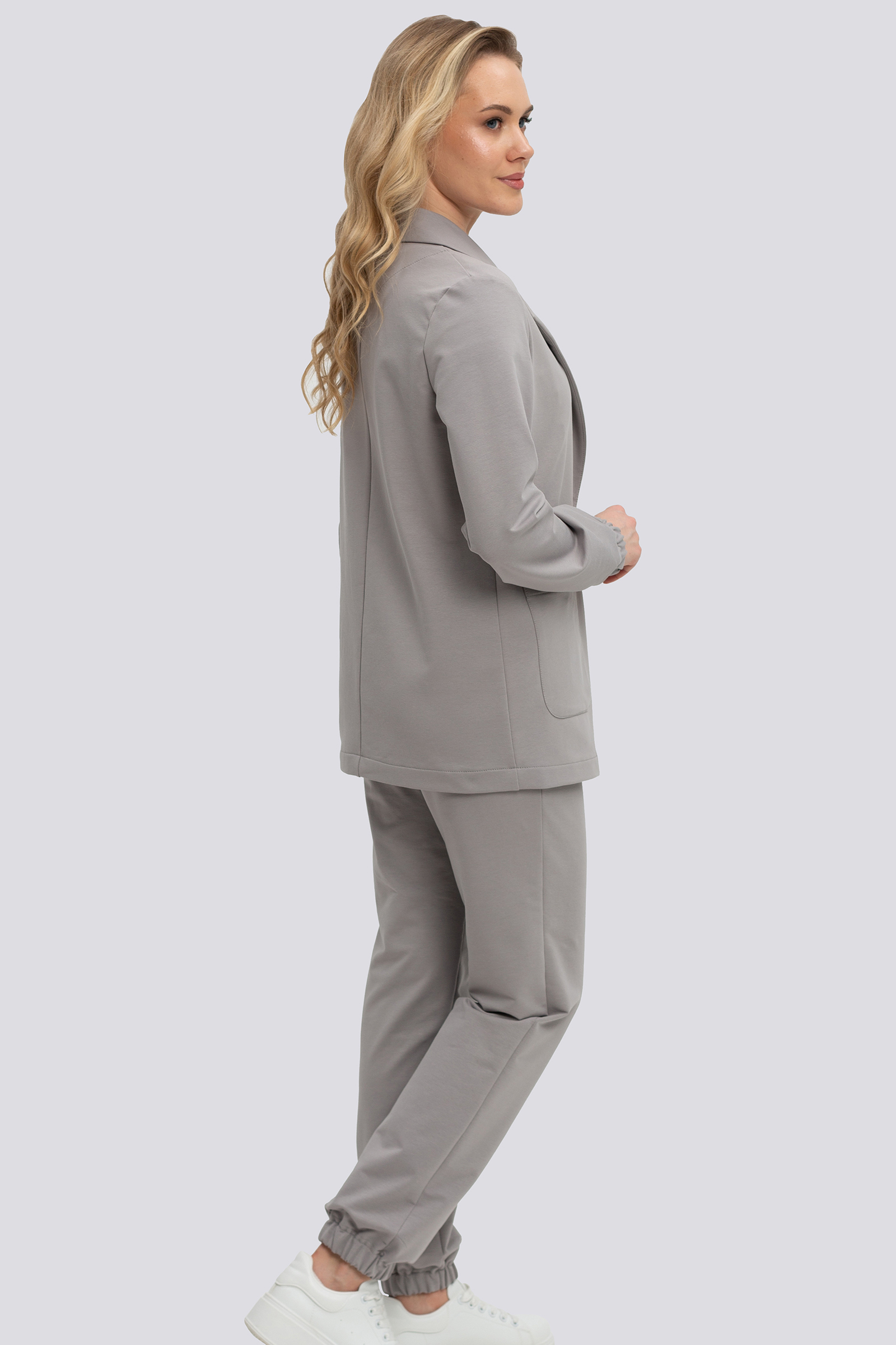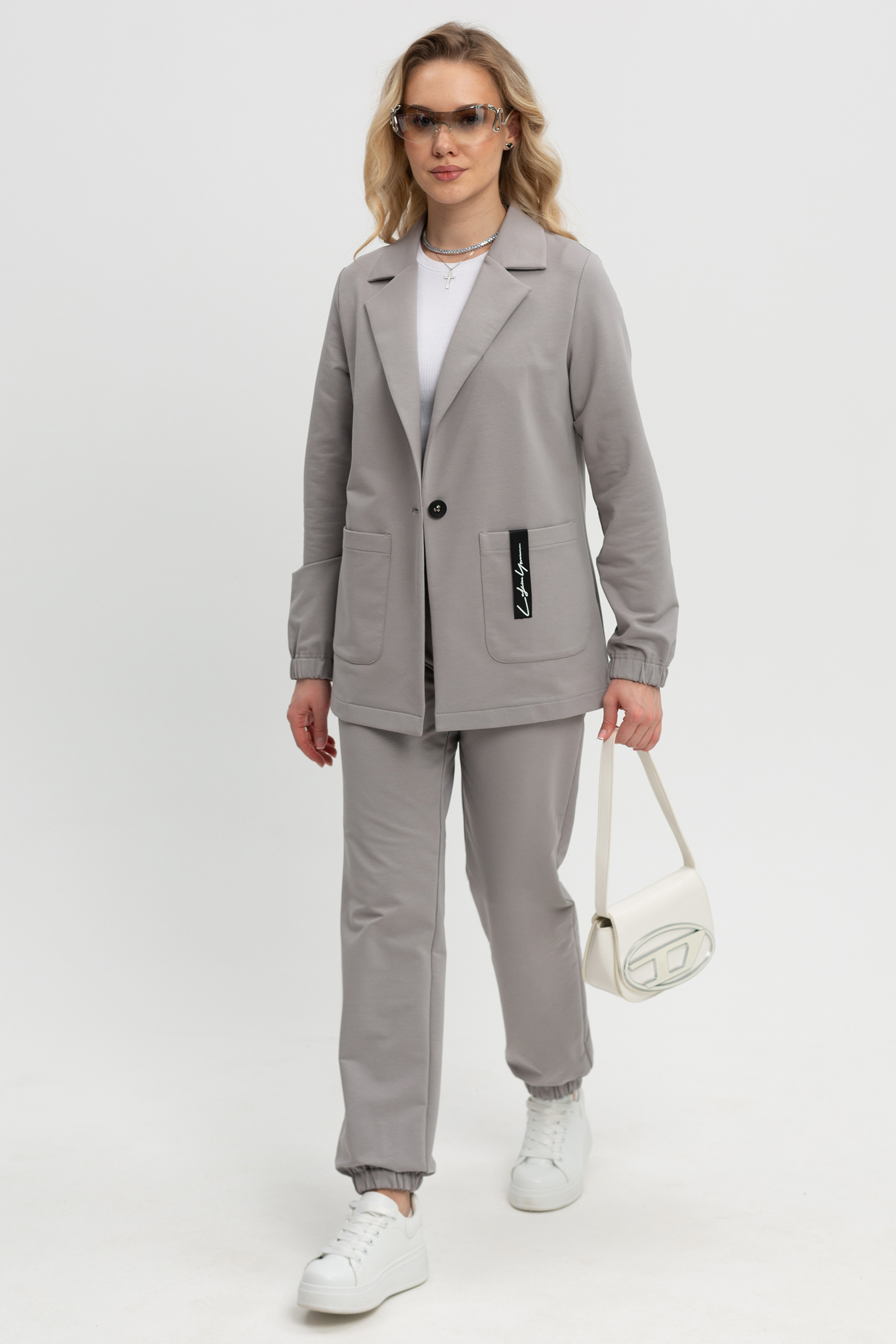 Костюмы в стиле спорт шик - любимая одежда современных покупательниц. Они удобные, комфортные и нарядные одновременно. Классический жакет отлично подружился с брюками спортивного стиля. Жакет прямого силуэта, умеренного объема, по низу рукава резинка. Воротник пиджачного типа придает образу элегантности, строгости. Брюки – джоггеры с резинкой по линии низа немного расслабляют. Накладные карманы добавляют уют. Яркая цветовая палитра разбавлена новинками – пепельным и черным меланжем, которые смотрятся очень оригинально. Учитывая все особенности этой модели, она несомненно станет незаменимой для своей обладательницы. Состав трикотажа: 75% хлопок, 20% полиэстер, 5% спандекс.