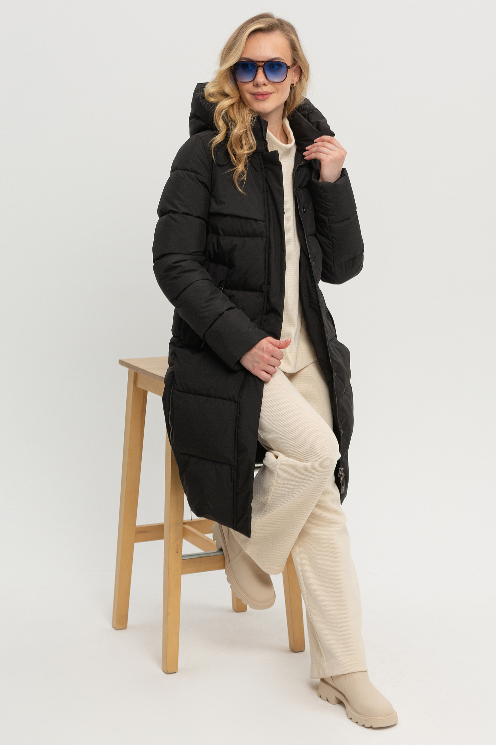 Модное женское пальто зимнее среднего объема, на синтепухе, станет незаменимым элементом гардероба в холодное время года. Выстроченное прямыми строчками, оно создает современный и лаконичный силуэт, подчеркивая чувство стиля своей обладательницы. Асимметричные кокетки на передней части добавляют образу оригинальности и динамики, выделяя пальто среди прочих. Красивые карманы-листочки, украшенные декоративными молниями, не только функциональны, но и служат стильным акцентом, придающим пальто изысканность. Они идеально подходят для хранения мелочей или просто для того, чтобы согреть руки в прохладную погоду. Большой и теплый капюшон с модными фиксаторами и шнурками обеспечивает надежную защиту от ветра и снега, а внутренний воротник- стойка добавляет дополнительный комфорт и тепло. Втачной рукав с трикотажным манжетом плотно прилегает к запястью, предотвращая проникновение холодного воздуха внутрь. Подкладка с дополнительным слоем термофина гарантирует оптимальную теплоизоляцию, позволяя чувствовать себя комфортно даже в самые морозные дни. Это пальто – идеальное сочетание стиля, комфорта и функциональности, созданное для современной женщины, ценящей качество и элегантность в каждой детали. Оно станет вашим надежным спутником в зимние месяцы, подчеркивая вашу индивидуальность и безупречный вкус. Утеплитель синтепух + на подкладе дополнительный слой утеплителя термофин, плотность 60. Температурный режим до -25.