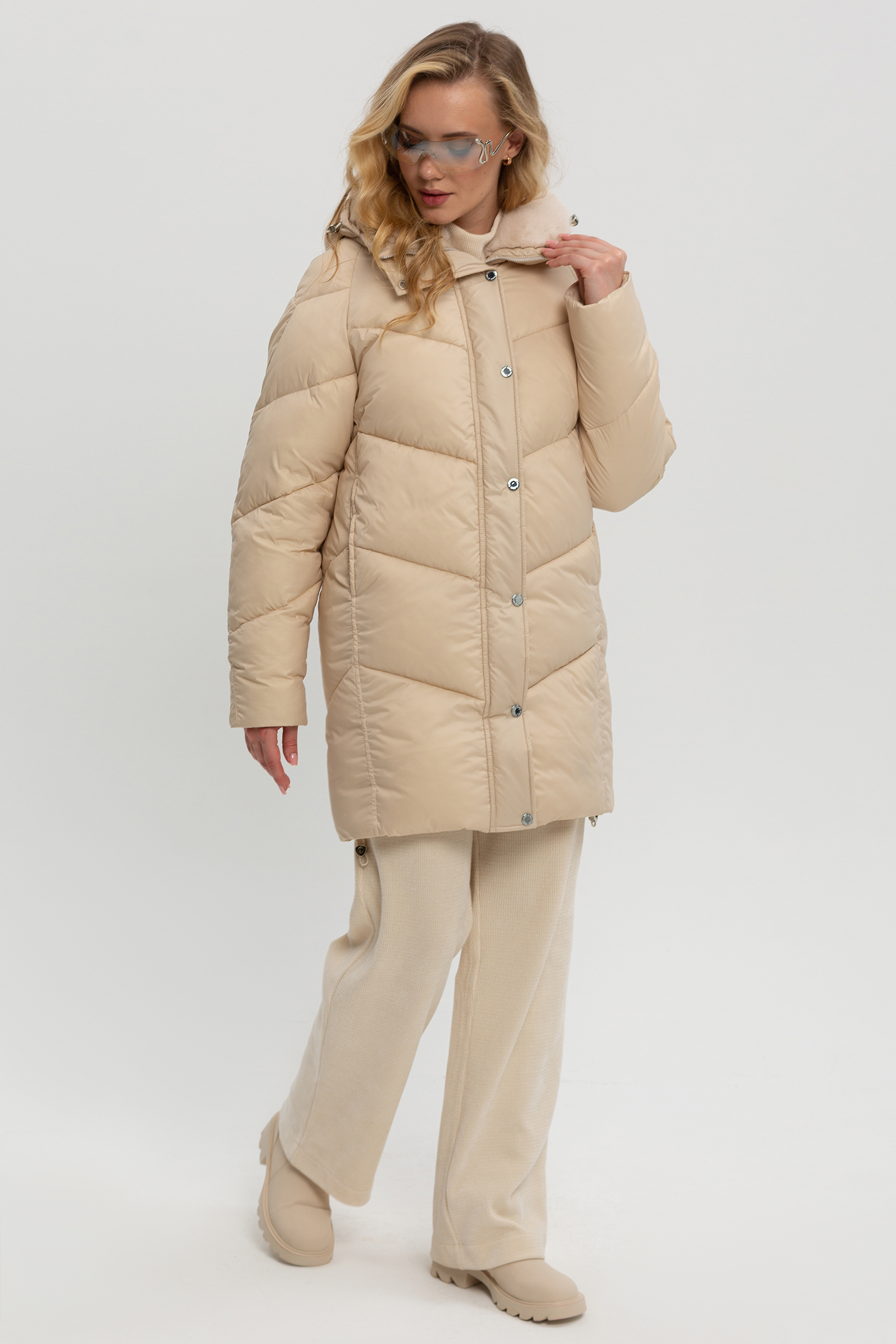 Объемная куртка не только стильно смотрится, она удобная, свободная и мягкая. Oversize стал настоящим спасением для тех, кто любит одежду, которая не сковывает движения, под пуховик можно надеть больше слоев. А это значит, что даже в самые сильные холода он будет согревать не хуже шубы. Наша модель комфортного объема, легкого «О» силуэта. Объем по линии низа изделия регулируется кулисой. Покрой рукава – реглан. Капюшон соединен с воротником, имеет внутреннюю отделку мехом. Мех искусственный, легок в уходе, очень мягкий и приятный, внешне напоминает норку. За счет меха изделие смотрится очень стильно и современно. Длина изделия универсальна, подойдет на любой рост. Дамы размера size+ могут позволить себе данную модель на размер меньше, чтобы визуально уменьшить объем. Утеплитель синтепух, дополнительно на подкладке термофин, плотность 60. Температурный режим до -25.