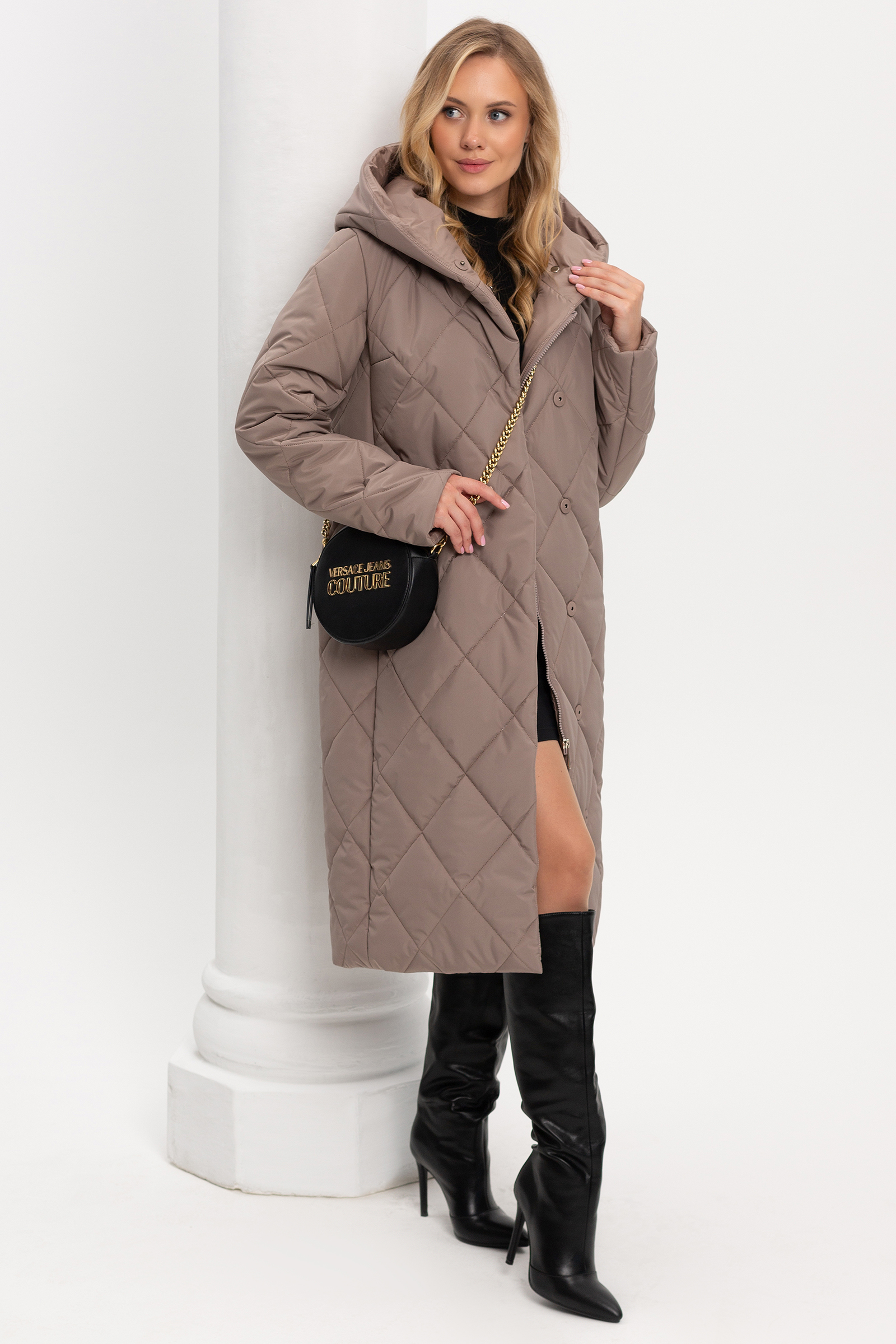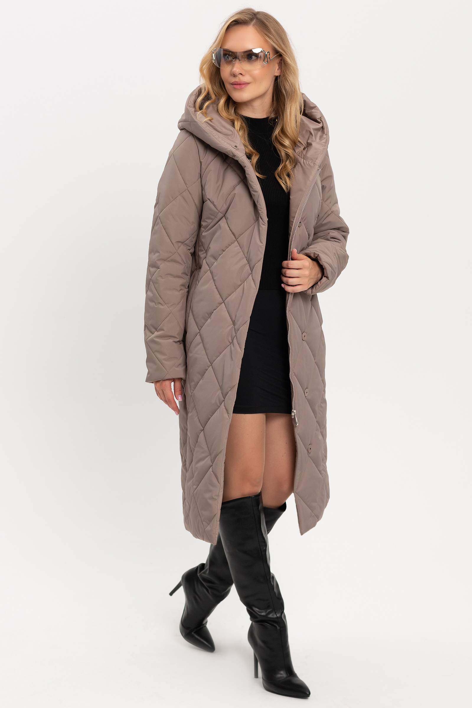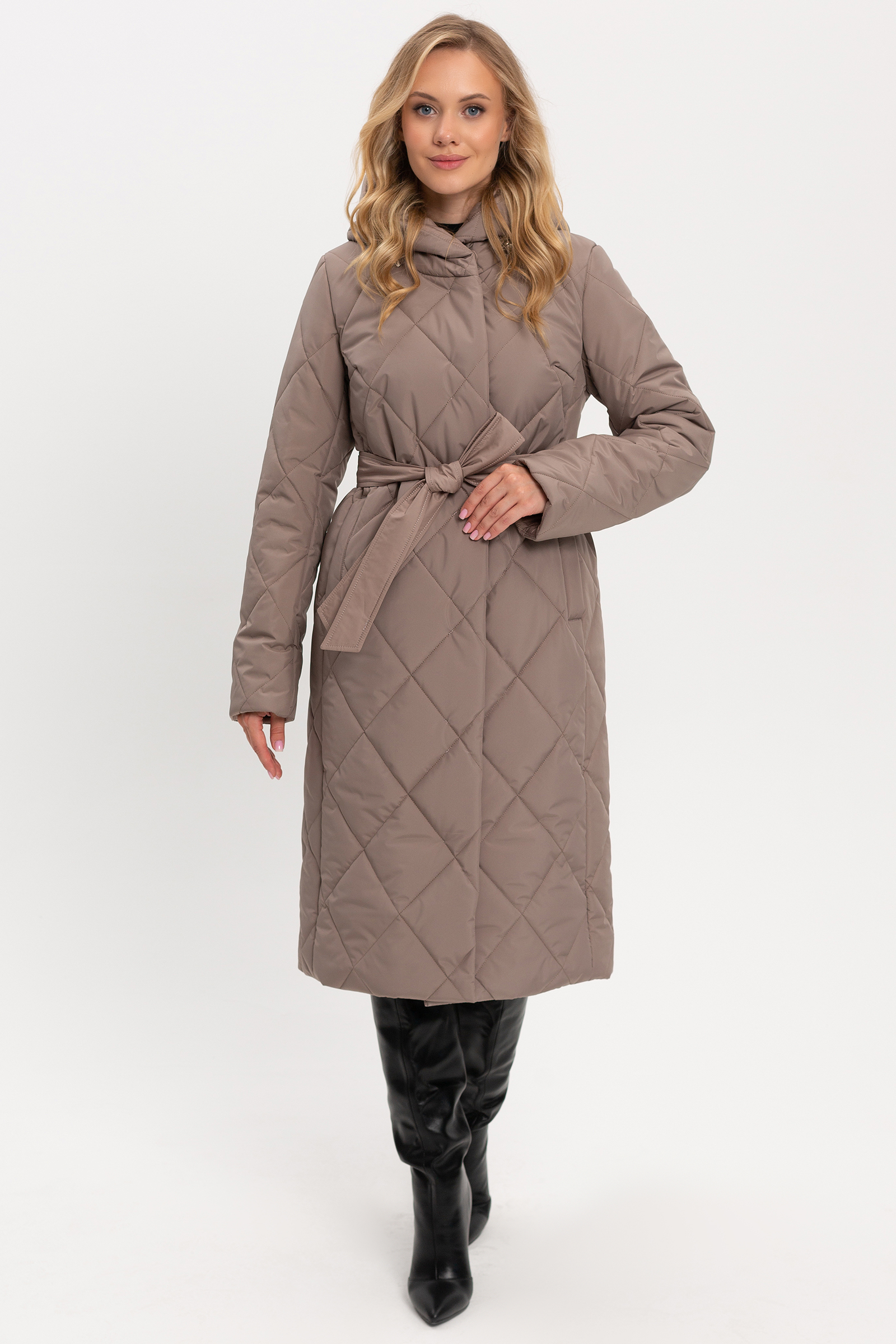 В этом году, как и в предыдущих, не теряют свою актуальность стеганые пальто. Изделие из данной ткани более практичное и удобное в использовании. Пальто в классическом стиле, полуприлегающего силуэта. Умеренный объем изделия идеально подходит для создания уютного образа, который при этом будет выглядеть стильно и элегантно. Втачной покрой рукава идеален для любой фигуры, придает стройность и строгость образу. Капюшон – очень удобная и актуальная деталь верхней одежды, защитит от ветра и холода. Рукав отгибается на манжет. Модель отлично смотрится с поясом и без. Пальто застегивается на кнопки и внутреннюю молнию. Новый вид стежки несомненно приковывает взгляды окружающих. Нам удалось продлить сезон носки изделия, за счет внедрения в производство нового вида стеганой ткани. Ткань верха плотная и многослойная. Утеплитель термофин, плотность 200. Температурный режим до -10.