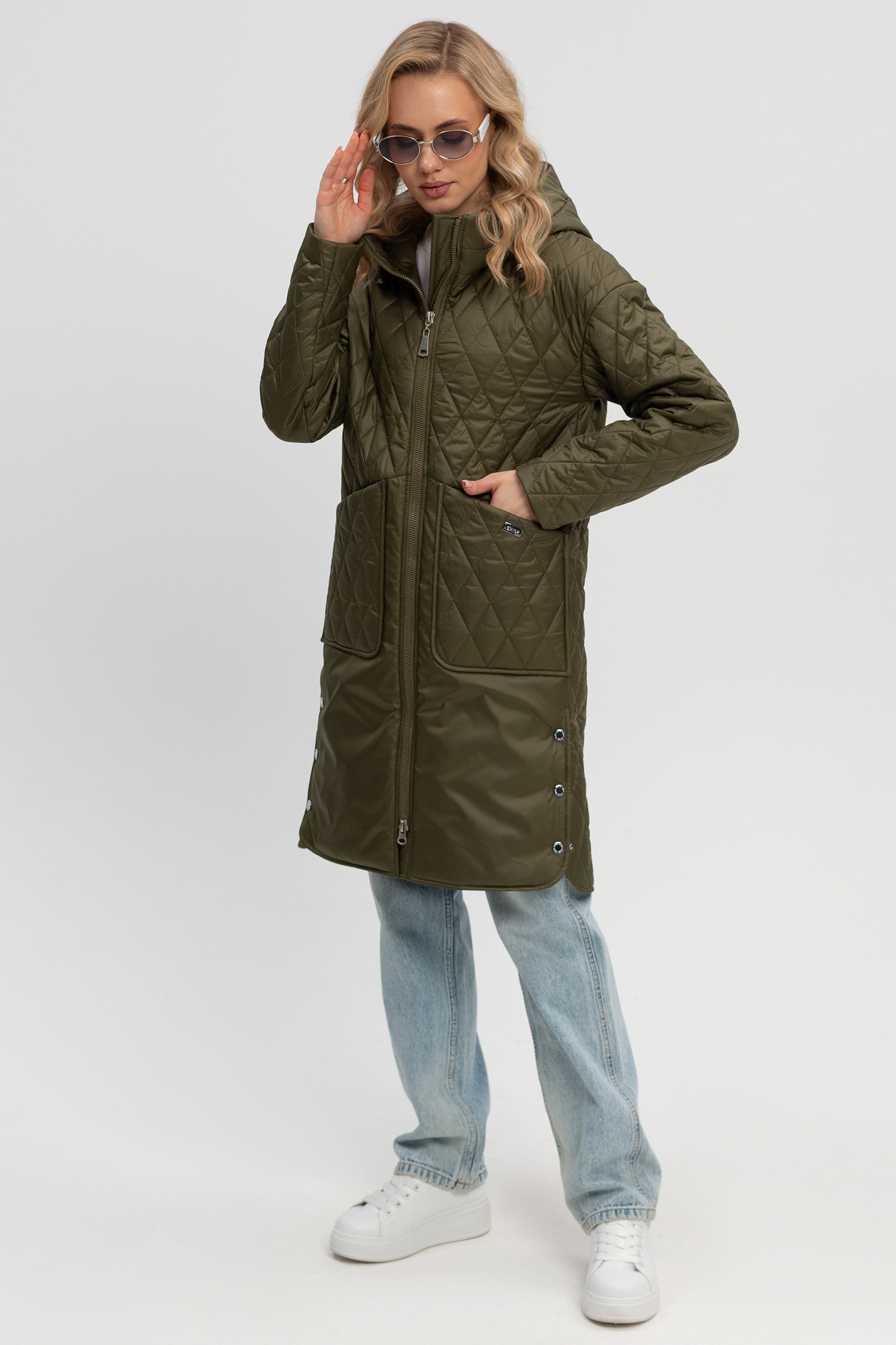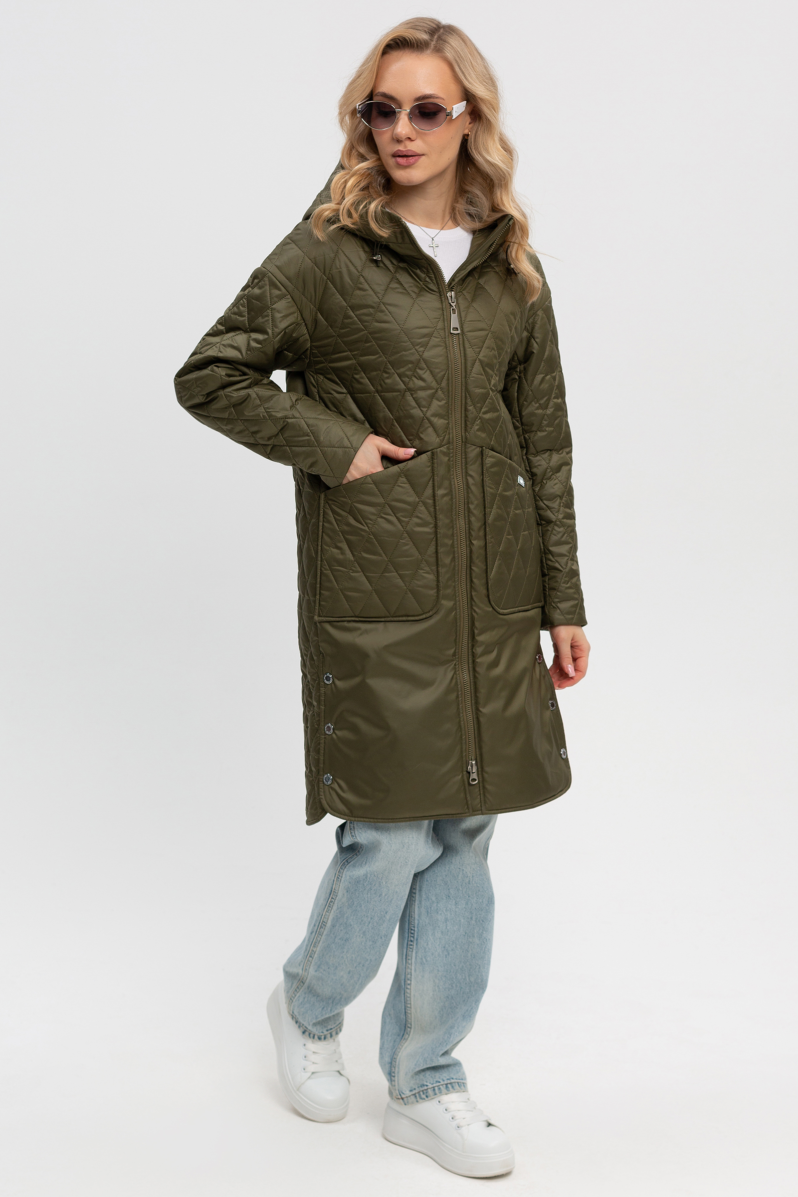 Женское пальто из строченой ткани с компаньоном в качестве отделки – это современный взгляд на классический силуэт. Свободный, слегка расслабленный крой, достигнутый благодаря спущенной линии плеча, позволяет чувствовать себя комфортно и уверенно в любой ситуации. Этот элемент дизайна не только добавляет пальто непринужденности, но и облегчает его сочетание с объемными свитерами и другими слоями одежды. Большие накладные карманы – это не только функциональная деталь, но и яркий акцент, придающий пальто графичность и современность. Они достаточно вместительны, чтобы вместить все необходимые мелочи, от телефона до перчаток. Разрезы по бокам изделия, застегивающиеся на кнопки, позволяют регулировать силуэт пальто, создавая различные образы. Застегнутые разрезы придают пальто более строгий и лаконичный вид, а расстегнутые – добавляют образу легкости и динамичности. Капюшон – это незаменимый элемент в условиях переменчивой погоды. Он не только защитит от ветра и дождя, но и добавит образу нотку урбанистического шика. Утеплитель 100 термофин – это гарантия тепла и комфорта даже в самую холодную погоду. Этот современный утеплитель обладает отличными теплоизоляционными свойствами, при этом он легкий и не сковывает движения. Температурный режим на плюсовую температуру до 0.