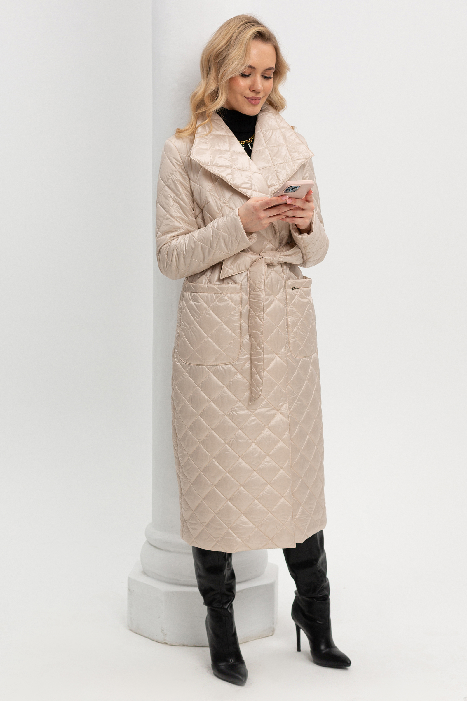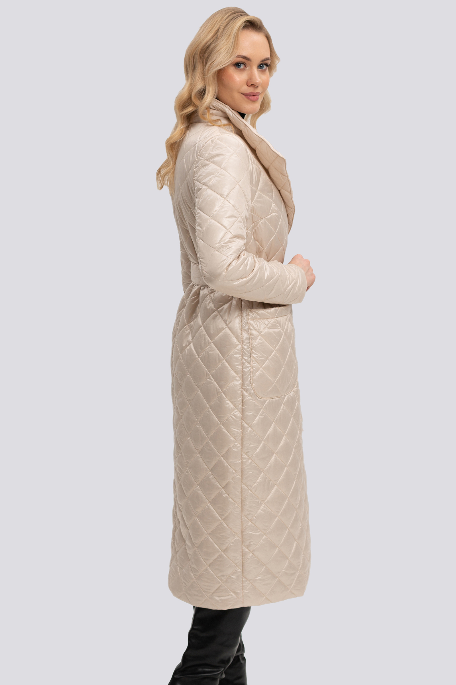 Такая модель стеганого пальто не только прекрасно защищает от непогоды, но и кардинально преображает образ, делая его стильным и невероятно элегантным. В таком пальто вы всегда будете выглядеть женственно и утонченно. Стеганое пальто, предназначенное специально для межсезонья. Застежка смещенная на кнопки, воротник "Апаш", накладные карманы, пояс в комплекте. Утеплитель термофин, плотность 100.