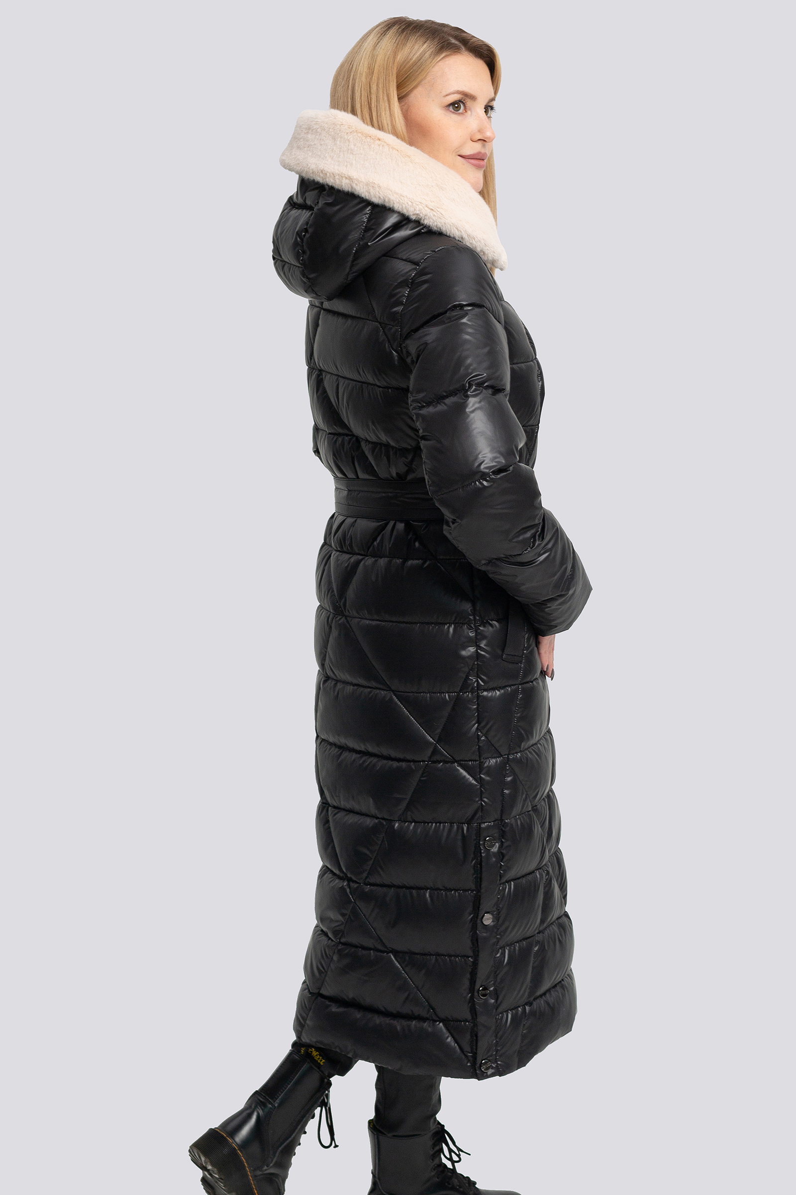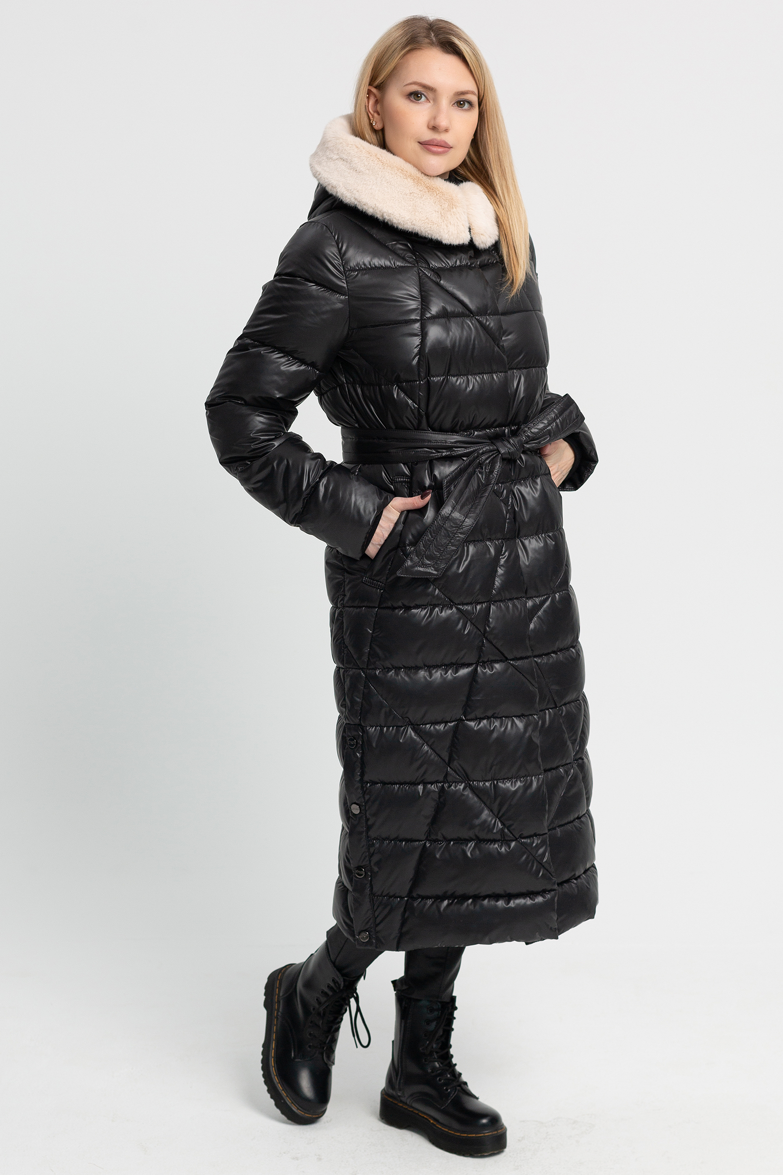 Длинный пуховик на синтепухе в лаконичных цветах, отлично дополнит ваши яркие образы. Вы сможете надевать любую одежду с ним и создавать современные луки в разных стилях, на свой вкус. Пальто прямого силуэта с капюшоном, декорированным искусственным мехом. Мех на пальто — не просто украшение, но и функциональный элемент. Он даёт дополнительную защиту от холода и ветра, но при этом служит еще и завершающим штрихом в изделии. Мех отстегивается. На переде карманы с листочками, застежка на «молнию» и потайные кнопки. Боковые разрезы на кнопках. Талия подчеркнута поясом. Утеплитель синтепух-синтетический пух. На подкладе дополнительный слой утеплителя термофин, плотность 60. Температурный режим до -25.