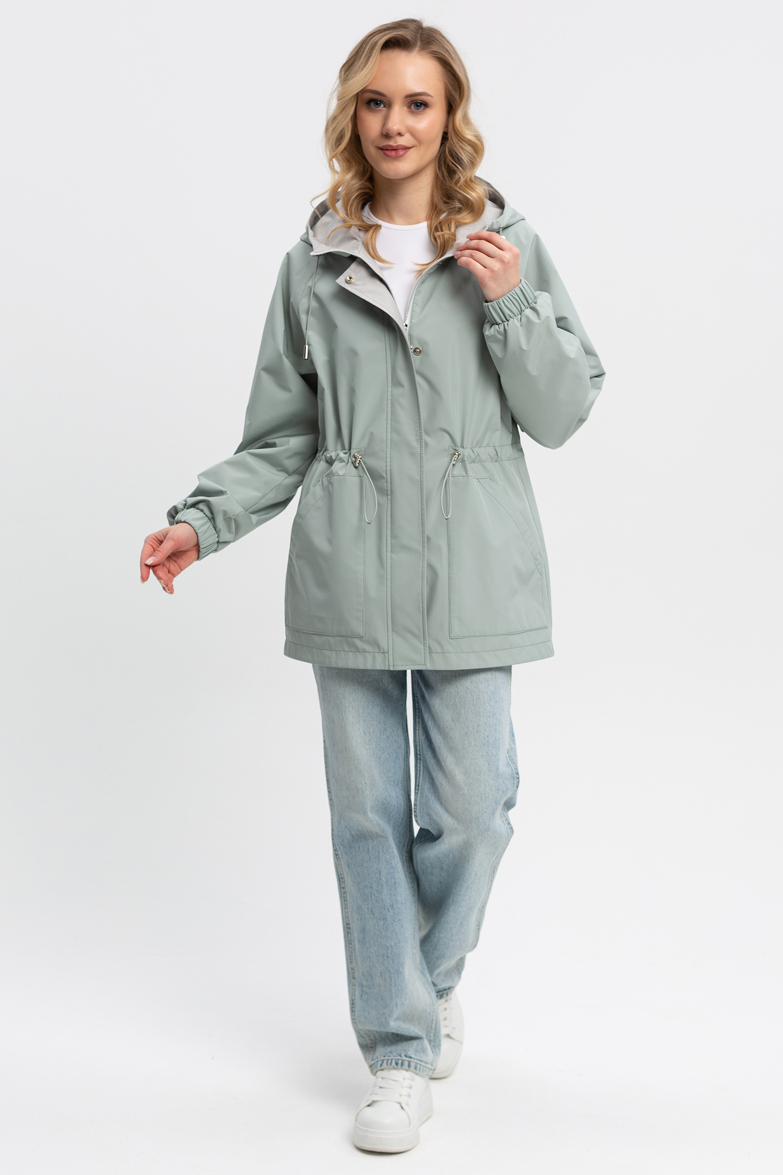 силуэт. По линии талии кулиска. Накладные карманы, дополнительно карман на подкладке изделия. Манжет