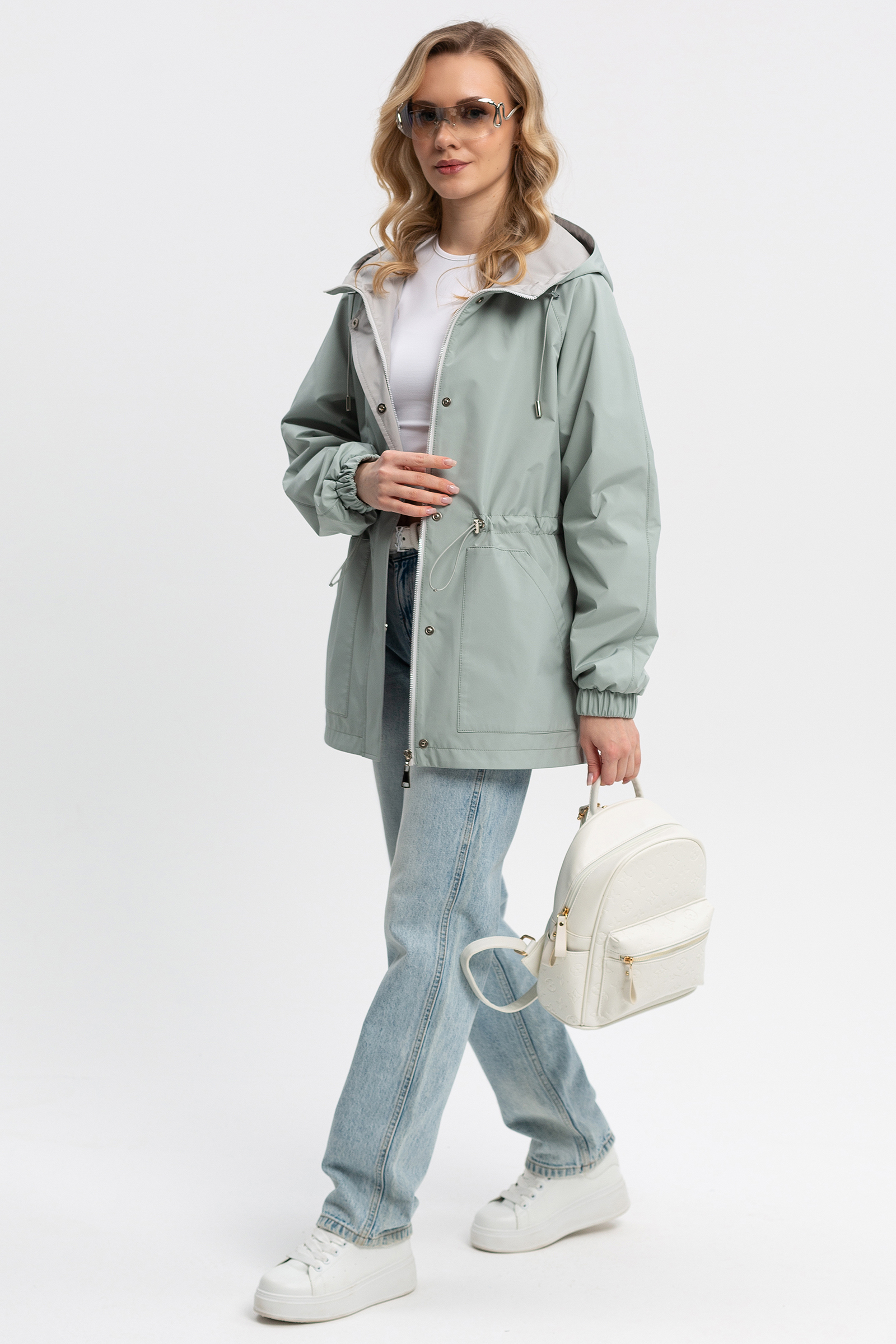Женская ветровка в полуспортивном городском стиле. Покрой рукава реглан, умеренный объем, прямой