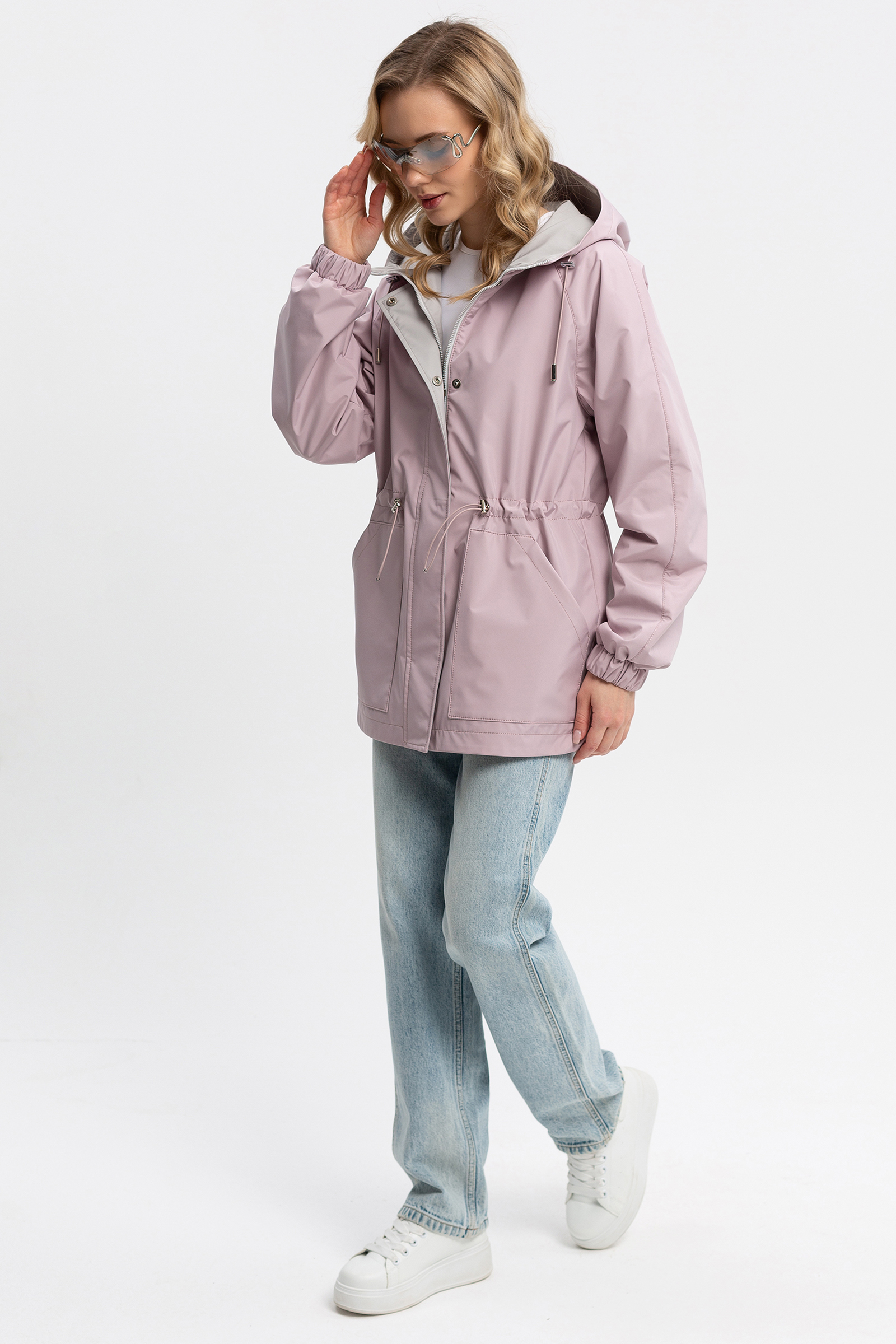 Женская ветровка в полуспортивном городском стиле. Покрой рукава реглан, умеренный объем, прямой