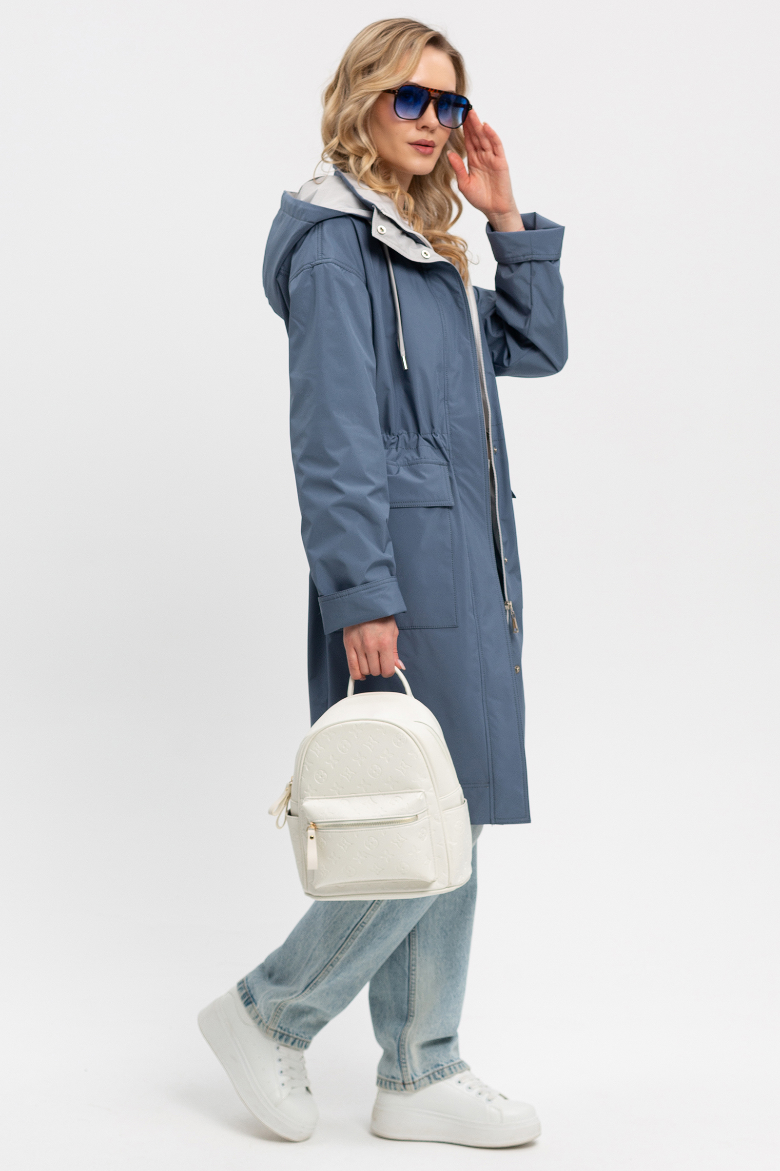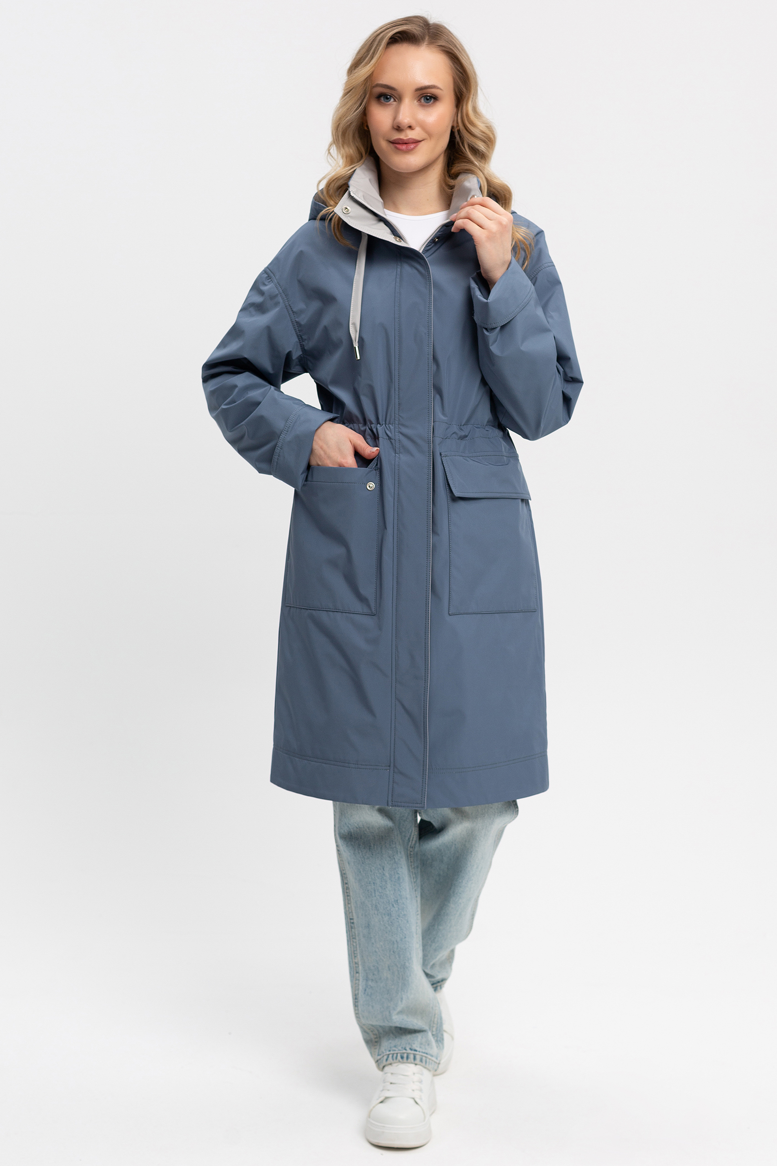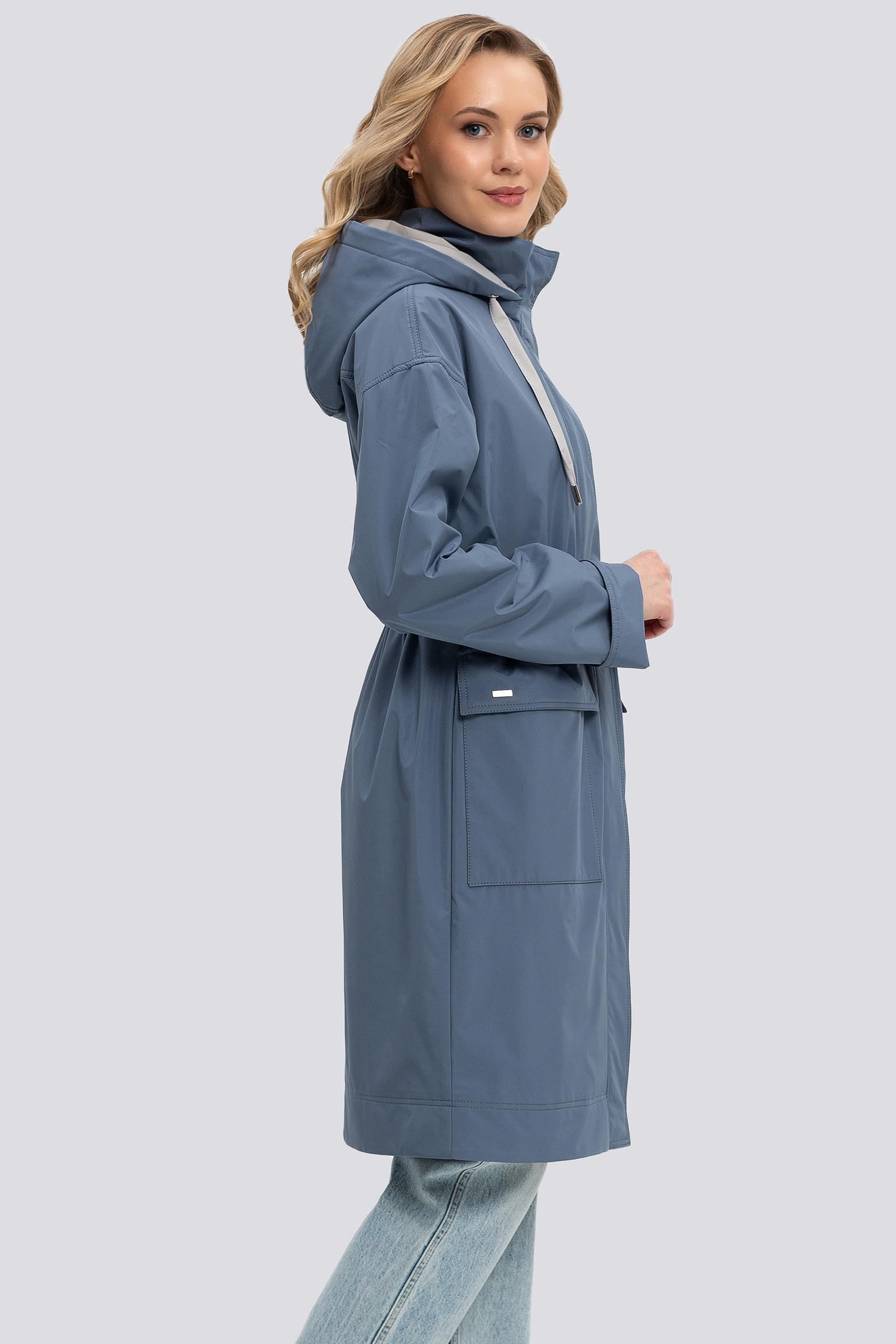 Женский плащ в полуспортивном городском стиле. Спущенная линия плеча, умеренный объем, прямой