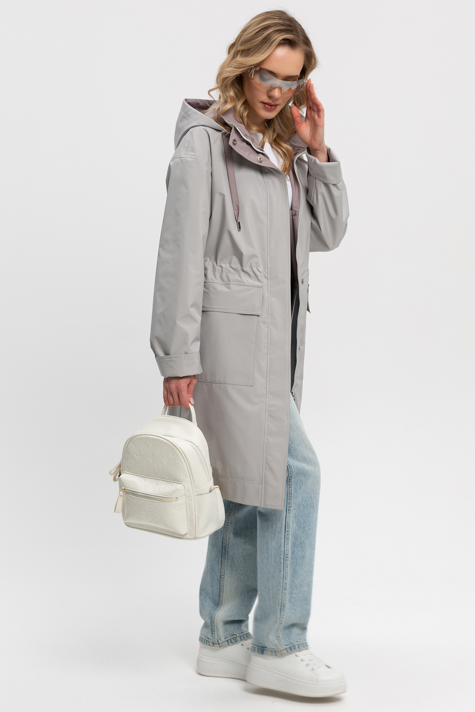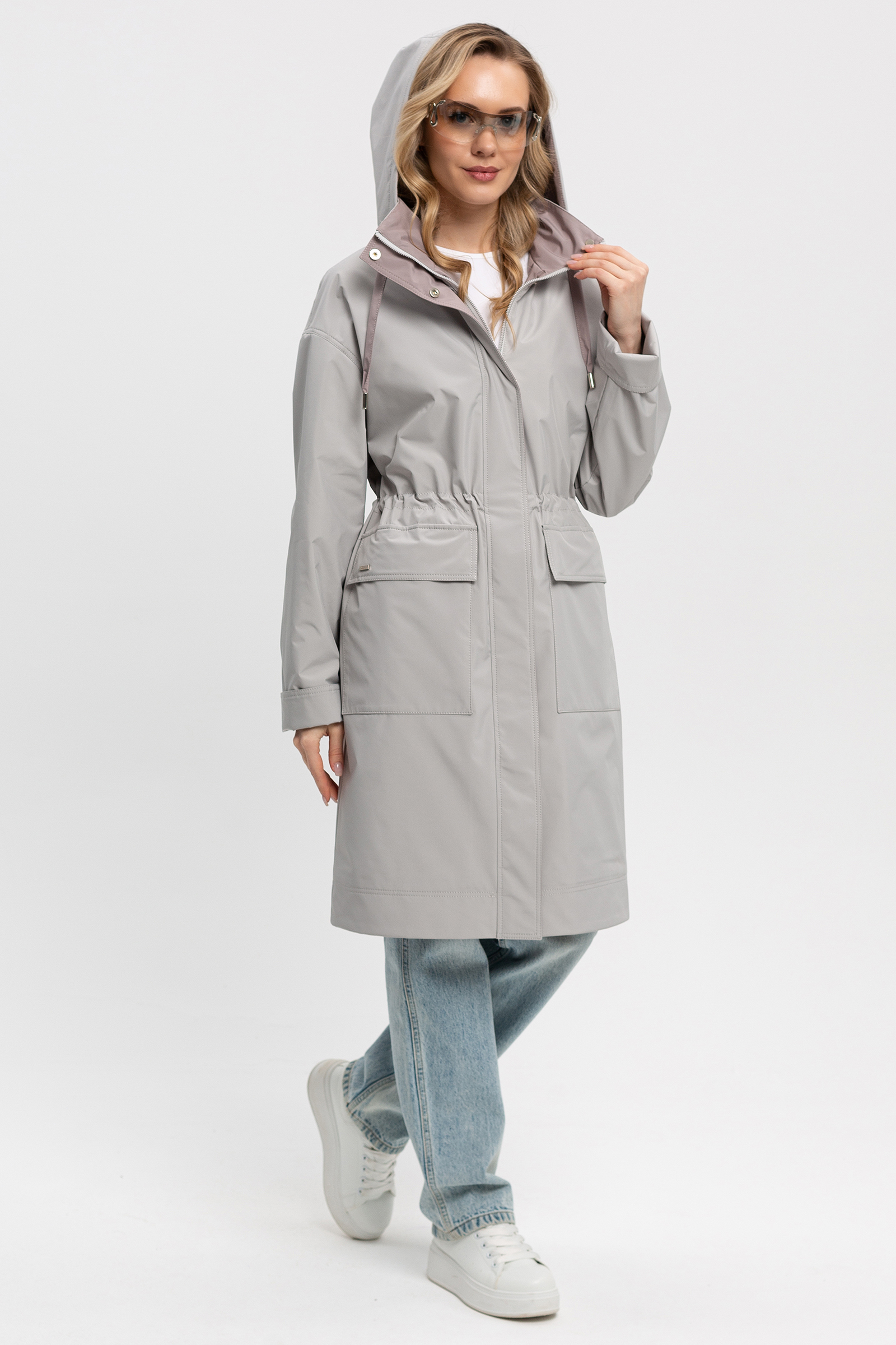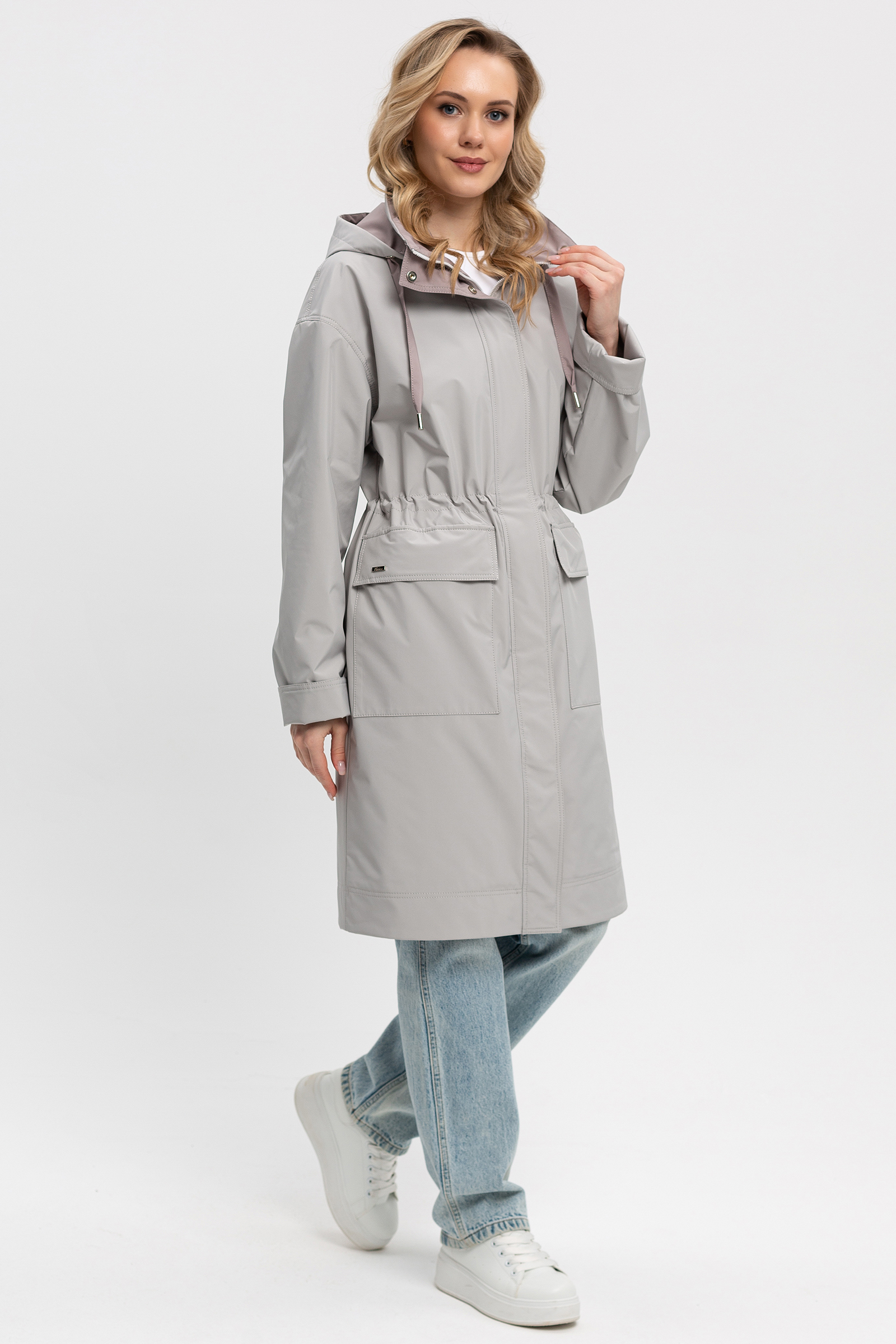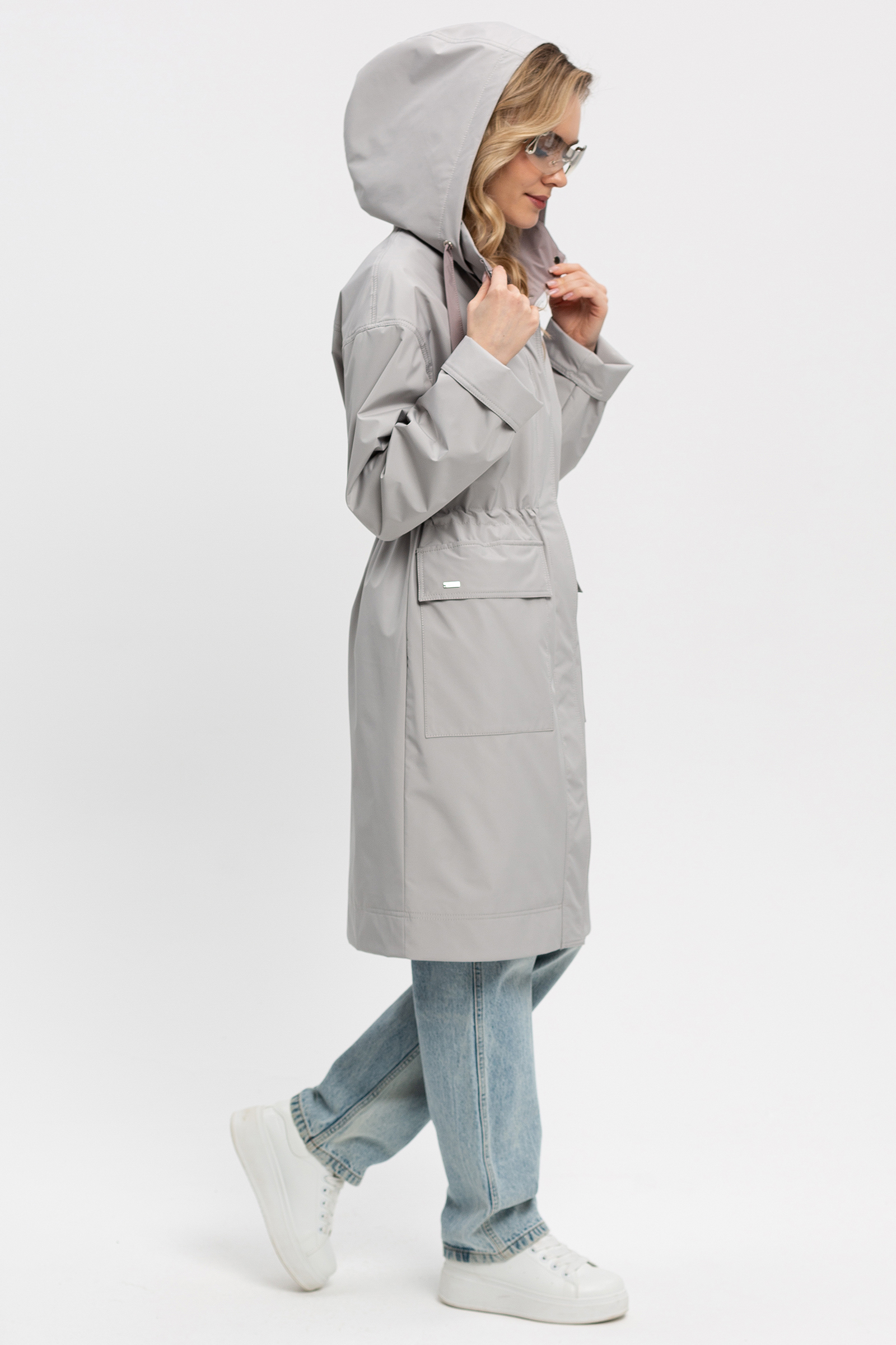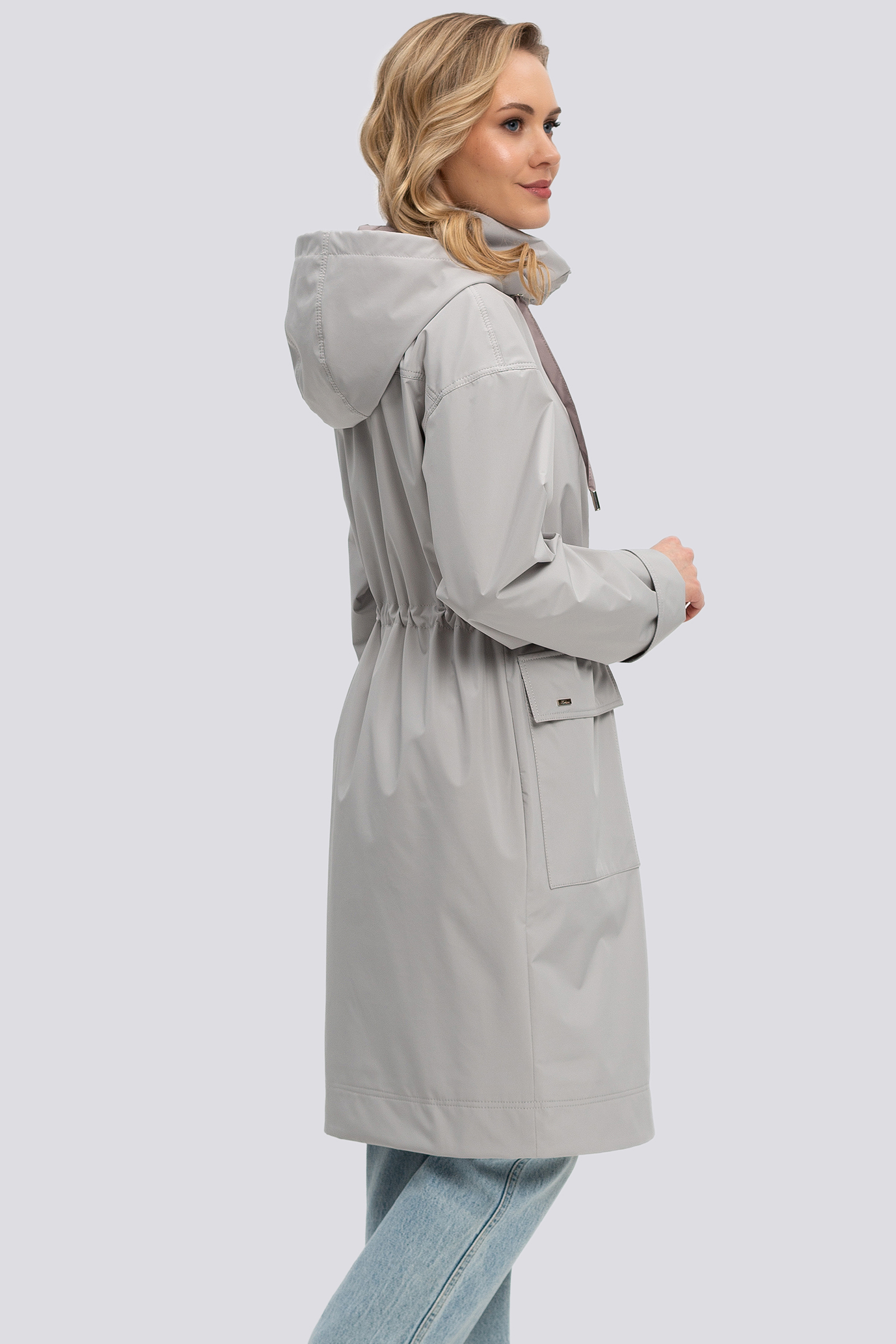 Женский плащ в полуспортивном городском стиле. Спущенная линия плеча, умеренный объем, прямой силуэт. По линии талии кулиска. Накладные карманы с клапаном, дополнительно карман на подкладке изделия. Капюшон отстегивается, рукав загибается на манжет. Застежка на молнию, прикрытую планкой. В изделии используется ткань-компаньон светлого цвета. Новинка!!! Ультратонкий утеплитель – экотекстиль, соответствующий термофину плотностью 40. Толщина слоя 1 мм. Ткань плащевая с водоотталкивающей пропиткой, 100% полиэстер.