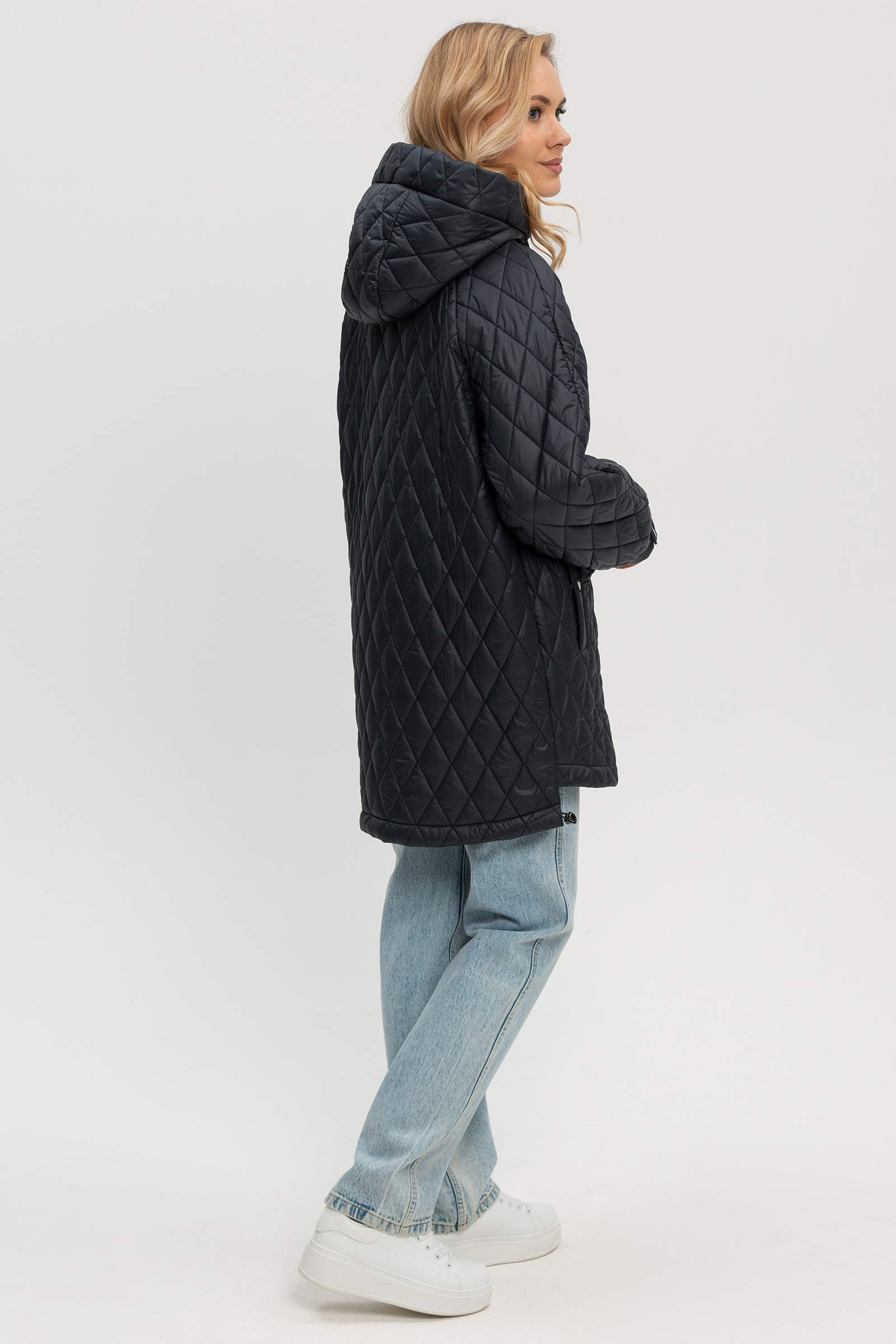 Легкая куртка-парка из стеганой ткани - отличный выбор для каждодневного использования. Умеренного объема, покрой рукава – реглан, что обеспечивает максимальный комфорт и свободу движений. Удобный капюшон с кулисой защитит от дождя и ветра. Фигурная линия низа изделия безусловно привлекает внимание, объем спинки снизу регулируется резинкой. Длина изделия до середины бедра отлично смотрится на любой фигуре, облегчает образ, идеально сочетается с брючками. Спинка длиннее переда на 3-5 см. Застежка молния, закрыта планкой с потайными кнопками. Изюминка модели – накладной кармашек, он действующий, создает асимметрию, что безусловно привлекает внимание. Утеплитель термофин, плотность 100 Температурный режим на плюсовую температуру до +1.