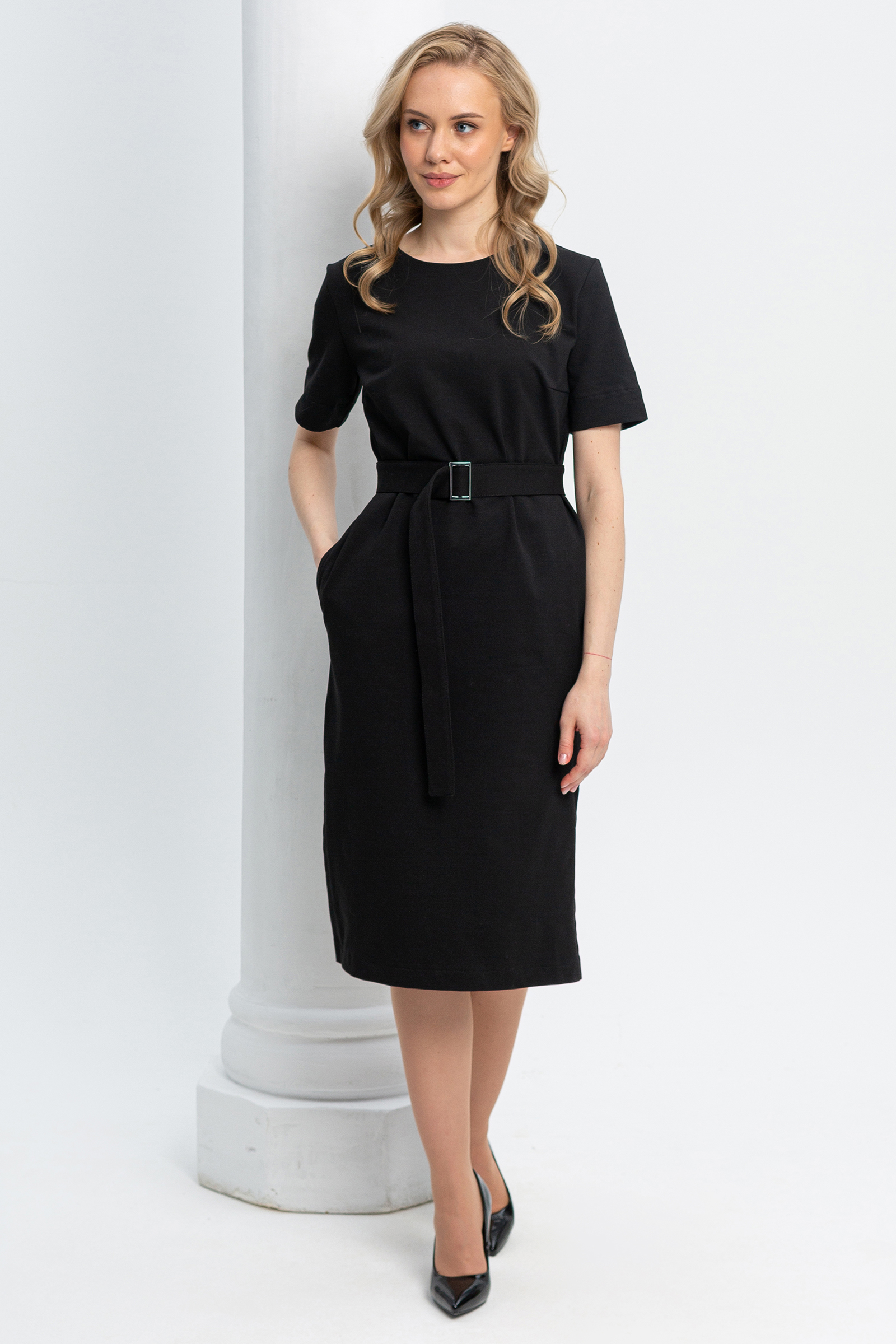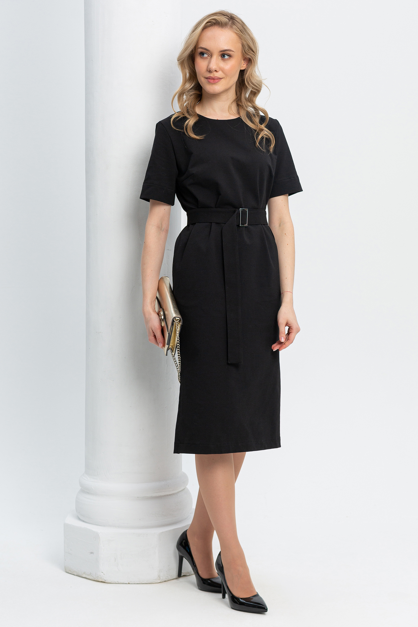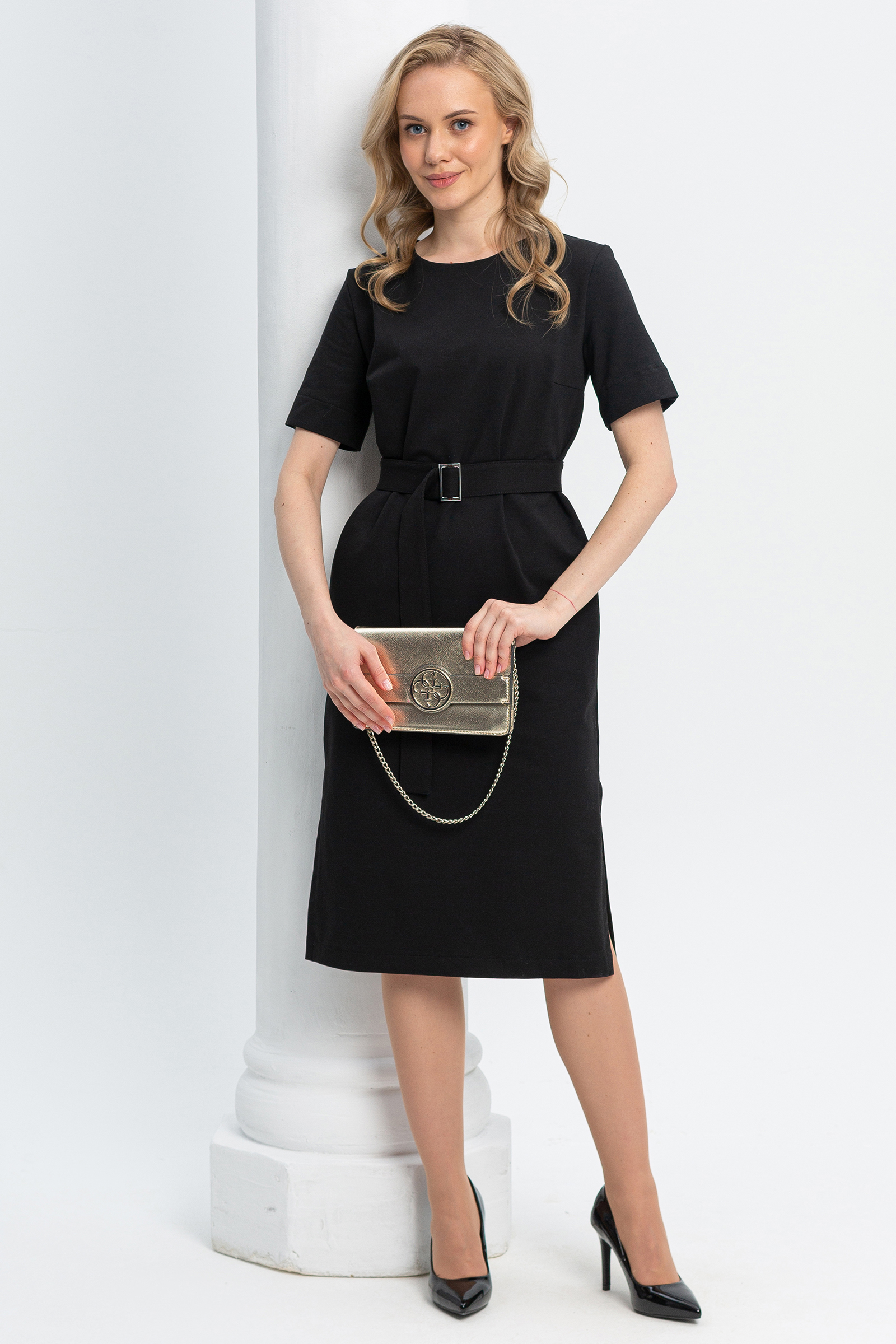 Платье всегда подчеркивает вашу женственность. Силуэт прямой, слегка приталенный по боковым швам, в которых расположены очень удобные кармашки. По боковым швам также есть разрезы, которые облегчают ваш образ и не стесняют походку. Состав трикотажа: 75% хлопок, 20% полиэстер, 5% спандекс.