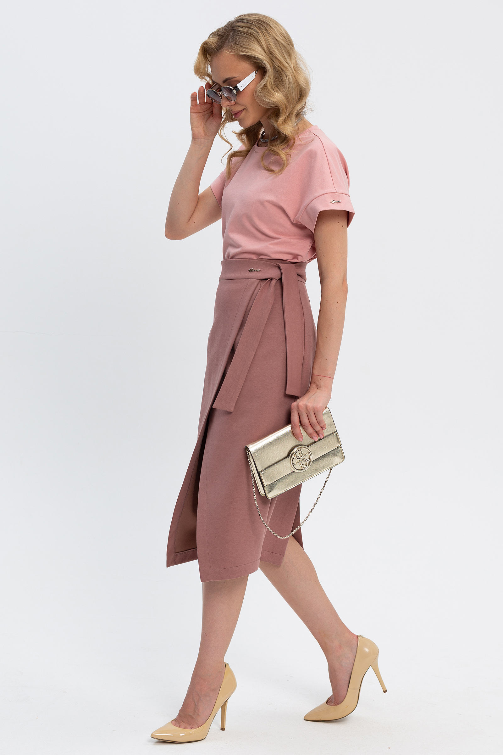 визуально вытягивает силуэт, создает акцент на талии и красиво приоткрывает ноги при ходьбе.