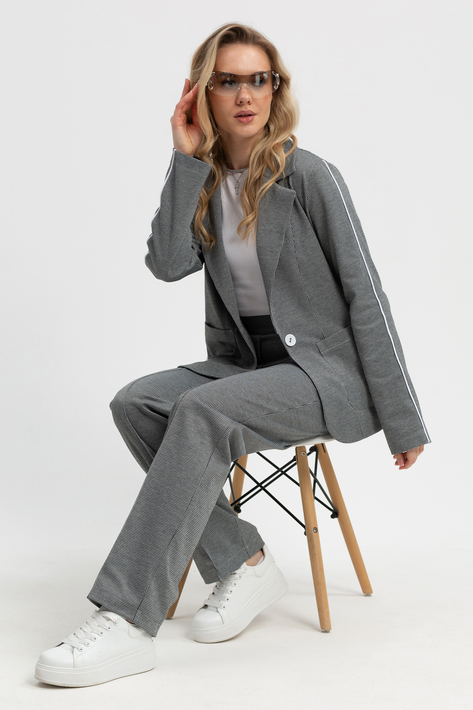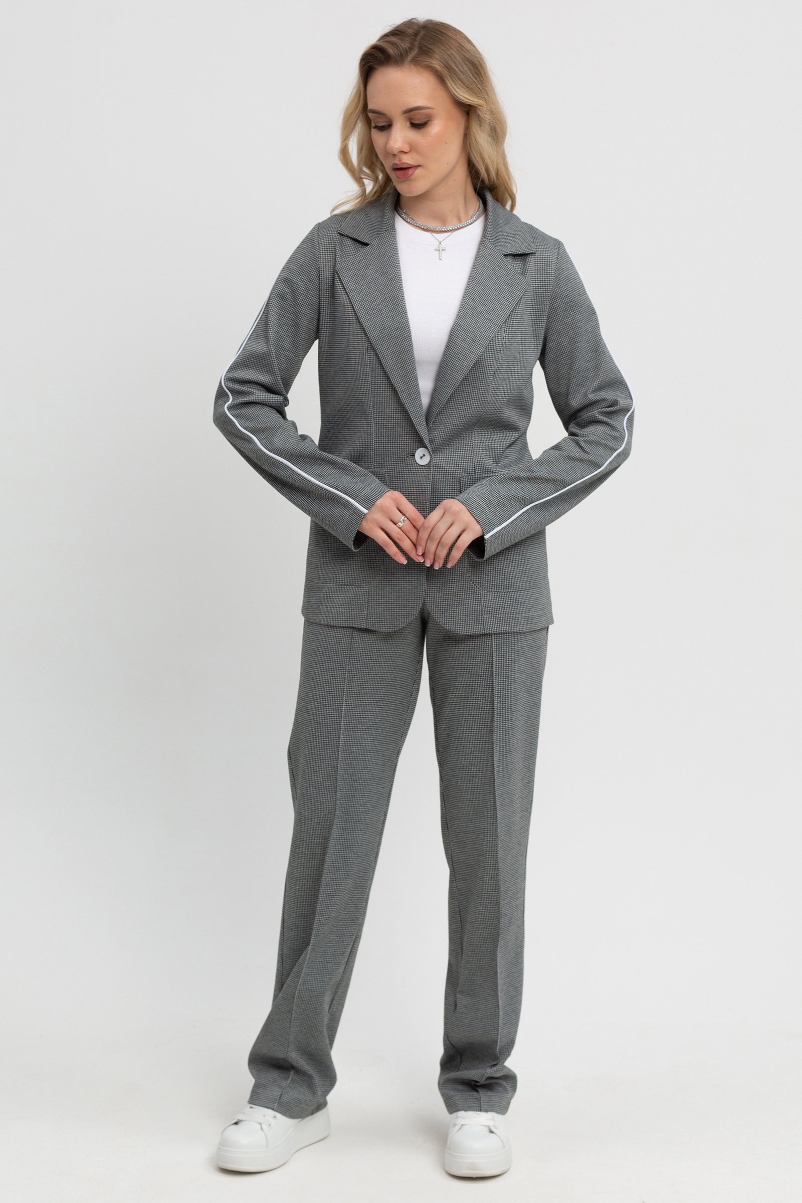 жакет с легким намеком на спорт – белый кант по рукаву, белая фурнитура