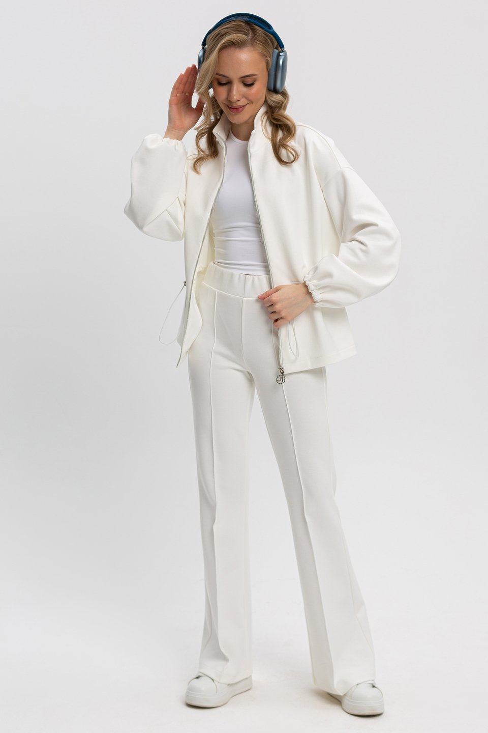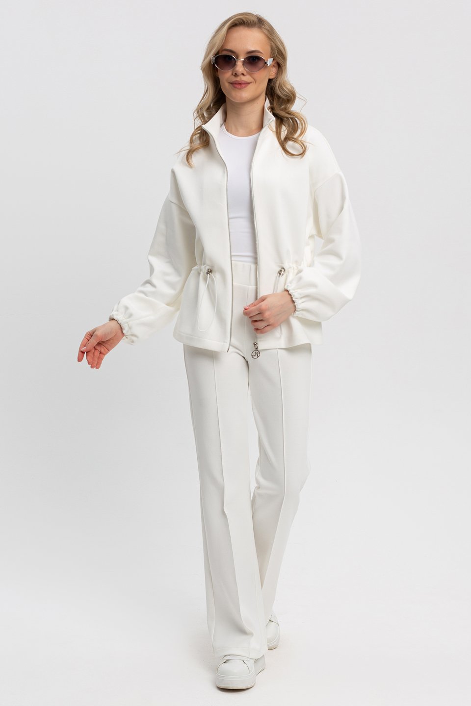 Весенний трикотажный костюм женский брючный может быть не только повседневным, но и очаровательным выбором для особых случаев. Универсальный верх можно сочетать с любой одеждой. Жакет для женщин идеально подходит для прохладного сезона, защищая от ветра и летней прохлады. Он необычайно универсален и легко вписывается в любую ситуацию. Свободный крой придает ему особую изысканность и обеспечивает свободу движений. Жакет свободного кроя , спущенный рукав, застежка на молнию. По талии кулиса на резинке. Низ рукава на резинке. Без карманов. Костюм из трикотажного полотна неопрен - эластичный, дышащий, обеспечивающий комфорт и сохранение формы. Состав трикотажа: 40% хлопок, 50 % полиэстер, 10 % спандекс.