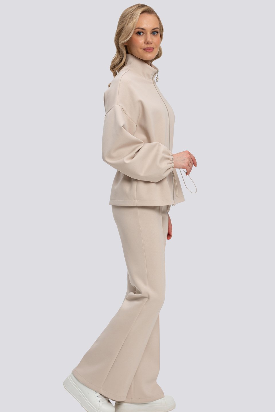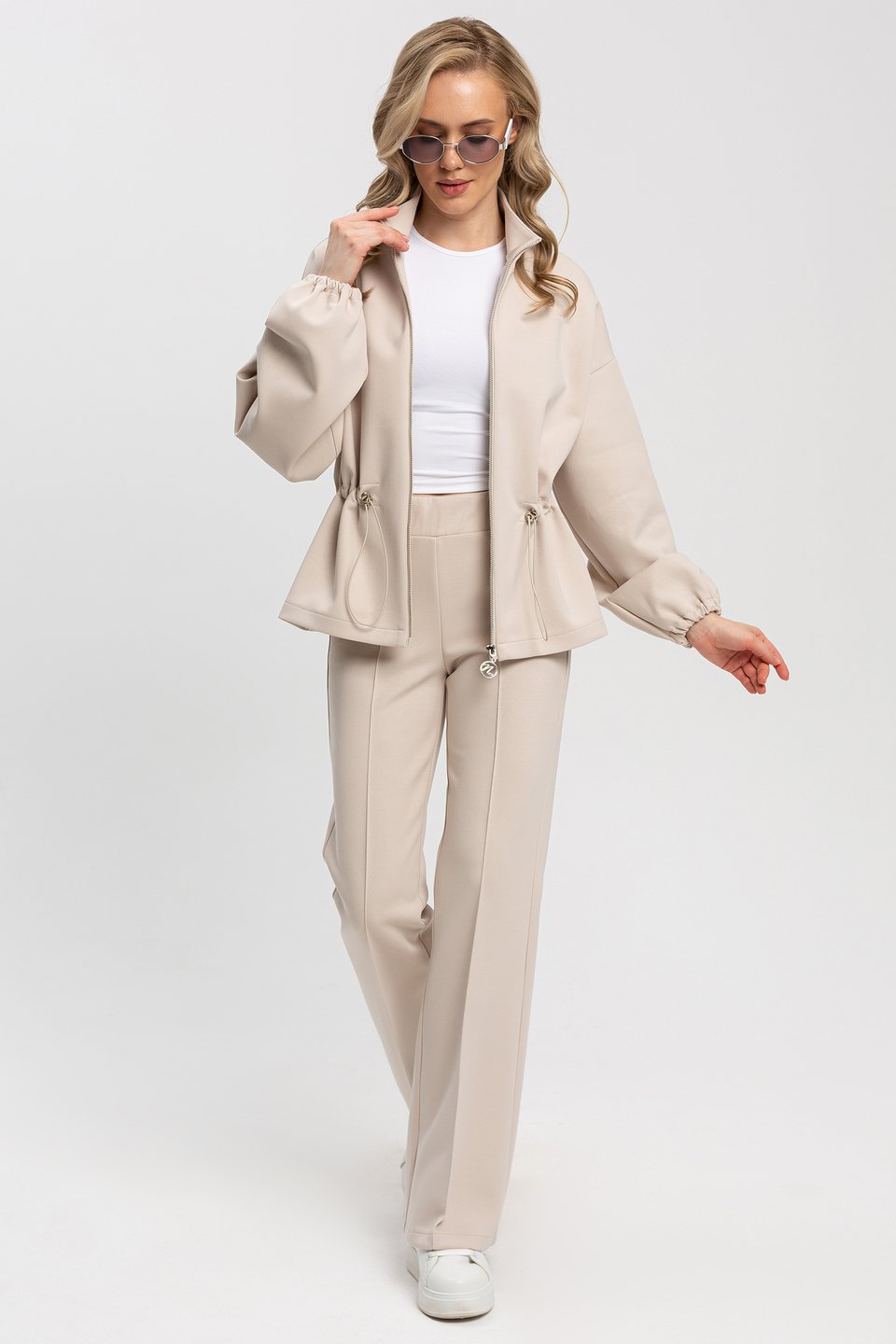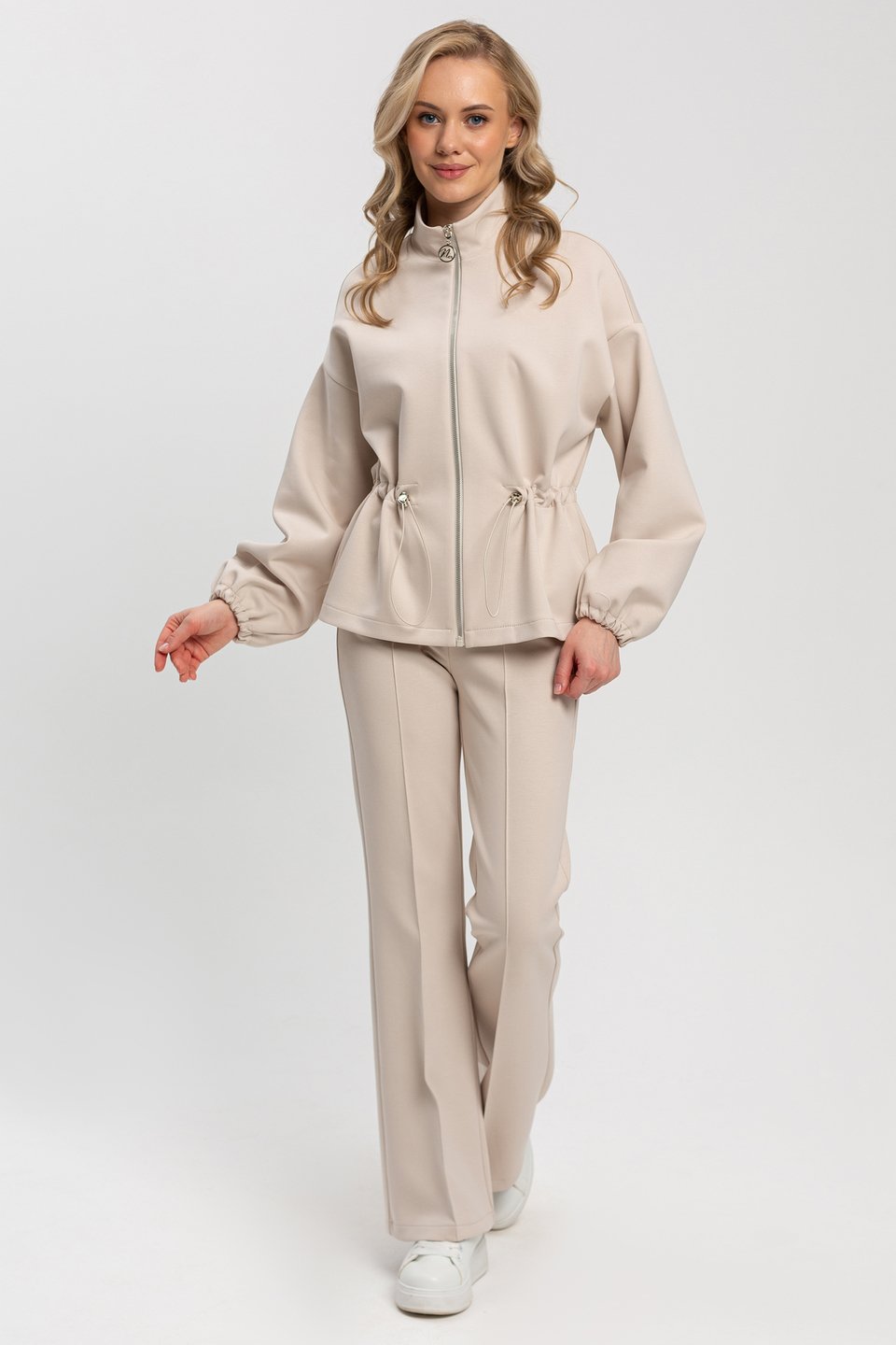 Весенний трикотажный костюм женский брючный может быть не только повседневным, но и очаровательным выбором для особых случаев. Универсальный верх можно сочетать с любой одеждой. Жакет для женщин идеально подходит для прохладного сезона, защищая от ветра и летней прохлады. Он необычайно универсален и легко вписывается в любую ситуацию. Свободный крой придает ему особую изысканность и обеспечивает свободу движений. Жакет свободного кроя , спущенный рукав, застежка на молнию. По талии кулиса на резинке. Низ рукава на резинке. Без карманов. Костюм из трикотажного полотна неопрен - эластичный, дышащий, обеспечивающий комфорт и сохранение формы. Состав трикотажа: 40% хлопок, 50 % полиэстер, 10 % спандекс.