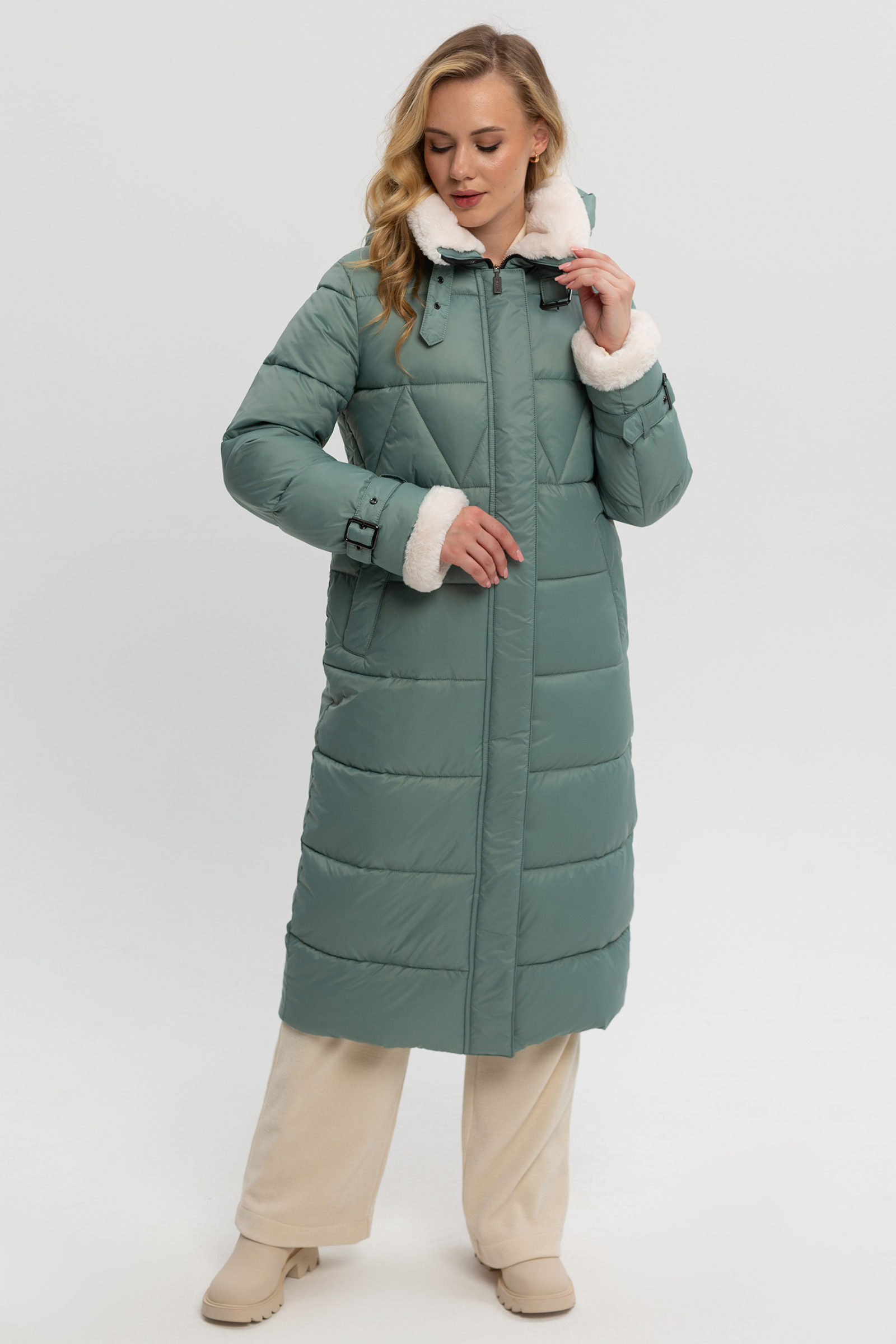 Женское теплое стеганое пальто – незаменимая вещь в зимнем гардеробе. Оно сочетает в себе элегантность и функциональность, обеспечивая комфорт даже в самые суровые морозы. Комфортная длина и прямой силуэт изделия позволяют чувствовать себя свободно и уверенно, не сковывая движений. Втачной покрой рукава добавляет пальто изысканности и подчеркивает женственность образа. Особое внимание привлекают детали: нежнейший мех контрастного молочного цвета на воротнике и манжетах придает пальто неповторимый шарм и создает ощущение уюта. Рукав с возможностью отворота на манжет позволяет регулировать длину и добавлять образу индивидуальности. Застежка-молния, скрытая под планкой, надежно защищает от ветра и холода, а воротник- стойка, застегивающийся на пряжку, обеспечивает дополнительную защиту шеи. Модель дополнена поясом, который позволяет подчеркнуть талию и создать более женственный силуэт. Практичным дополнением является отстегивающийся капюшон, который пригодится в снежную или дождливую погоду. Утеплитель – синтетический пух, дополненный синтепоном плотностью 60 на подкладке, гарантирует надежную защиту от холода. Температурный режим до -25 градусов позволяет комфортно чувствовать себя даже в самые морозные дни. Это пальто станет вашим верным спутником зимой, согревая и радуя своим стильным внешним видом.